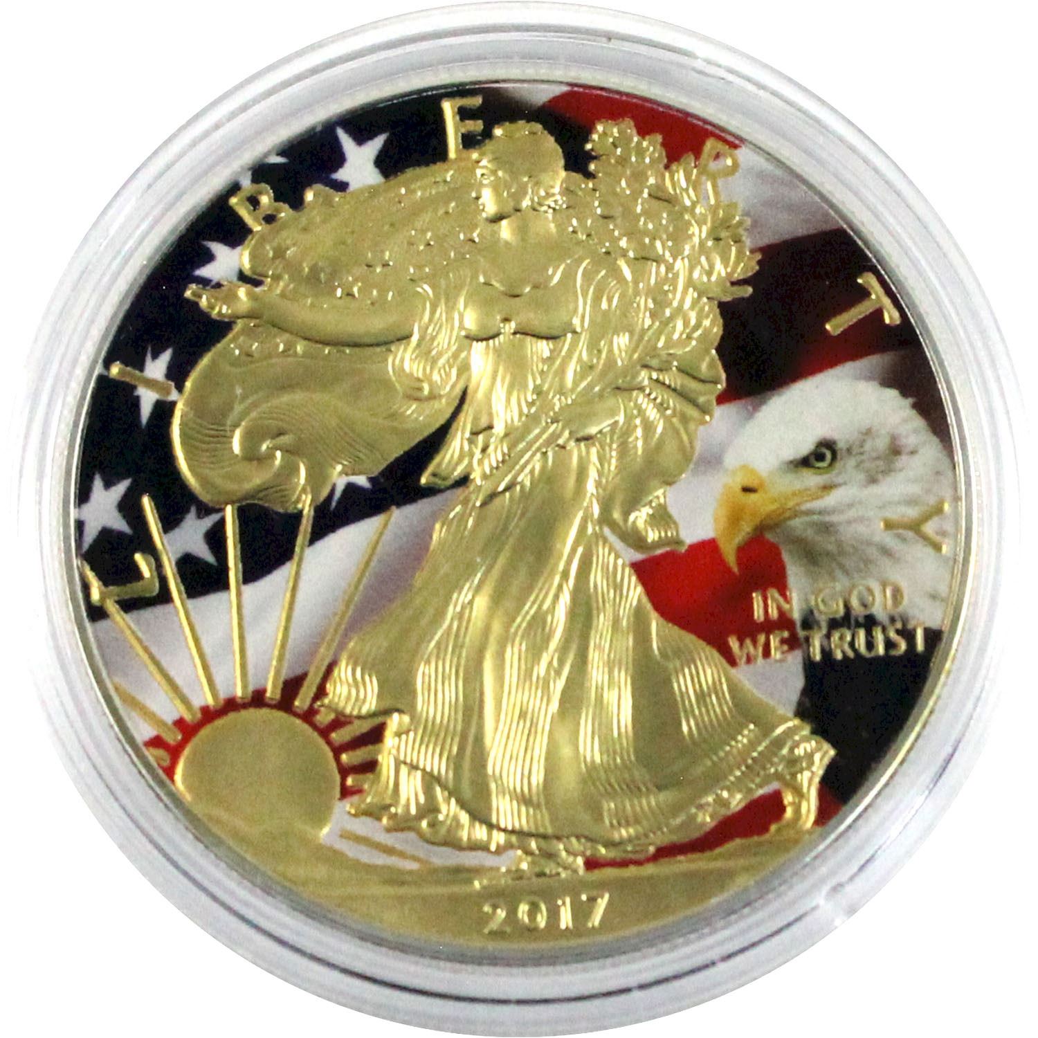 2017 USA 1oz Coloured American Eagle & Flag .999 Fine Silver Eagle in Capsule. (TAX Exempt)