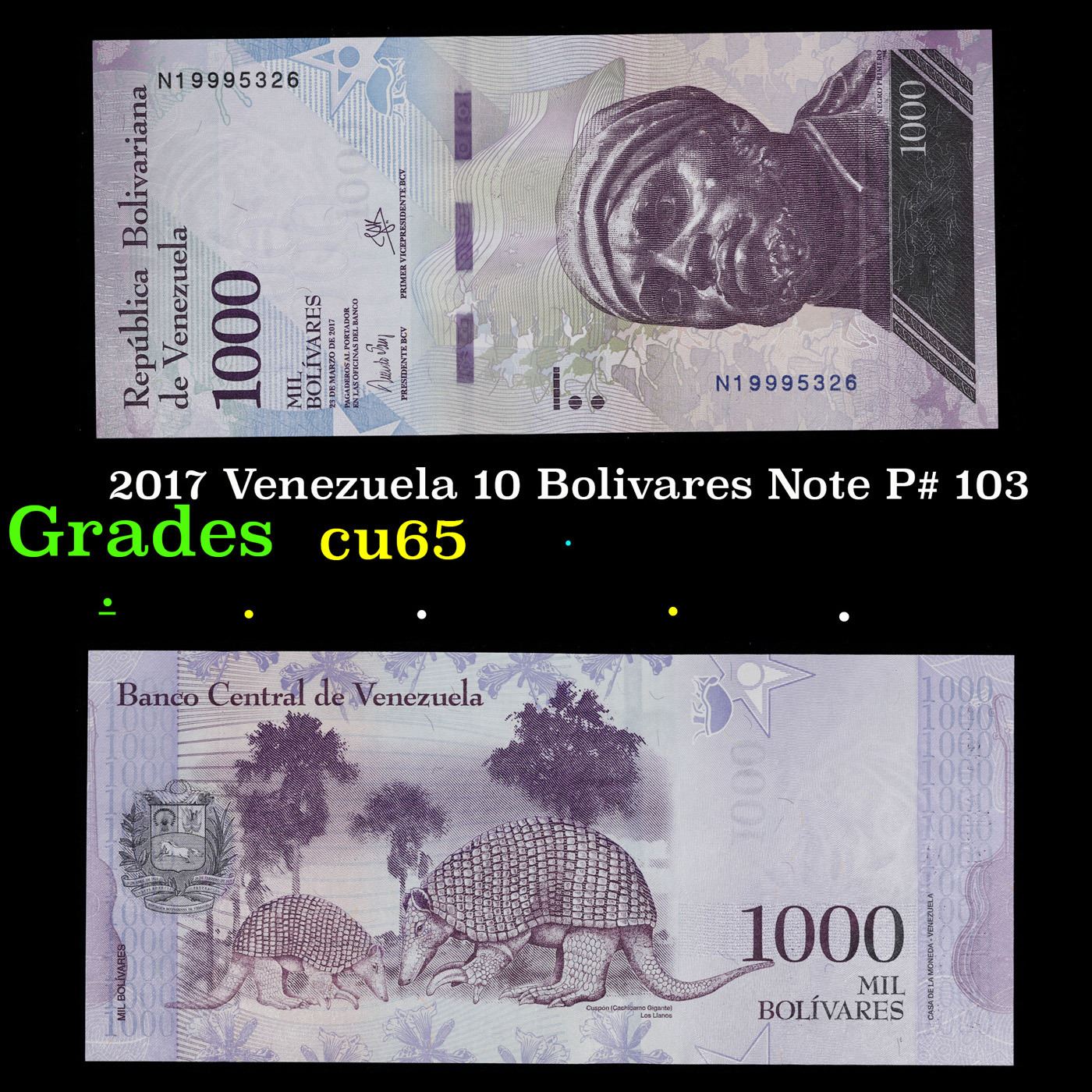 2017 Venezuela 10 Bolivares Note P# 103 Grades Gem CU.