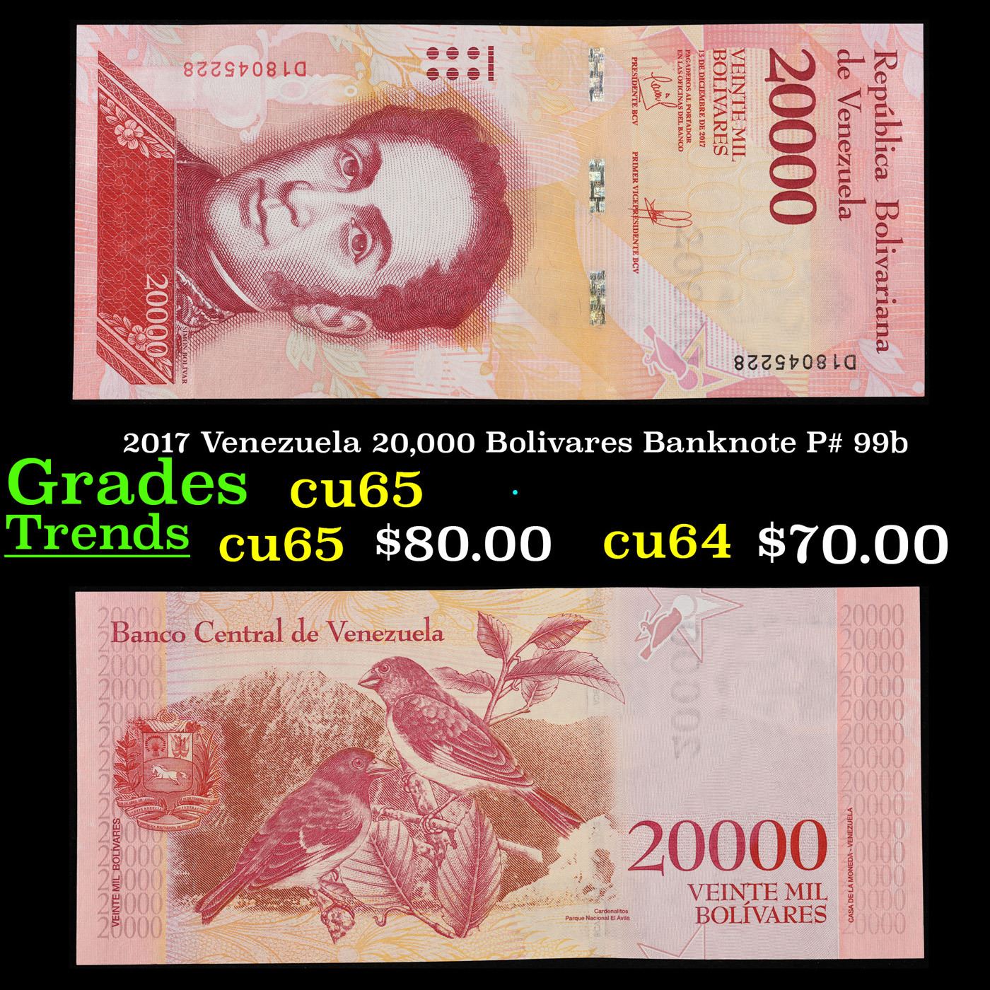 2017 Venezuela 20,000 Bolivares Banknote P# 99b Grades Gem CU.