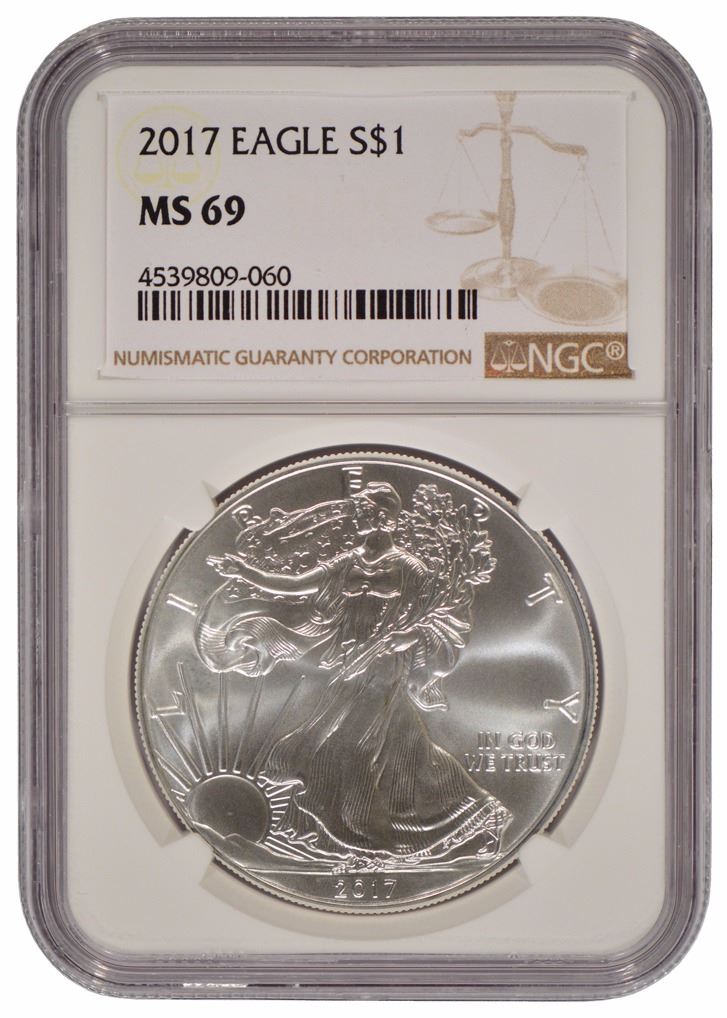 One 2017-W $1 American Silver Eagle Coin NGC MS69.