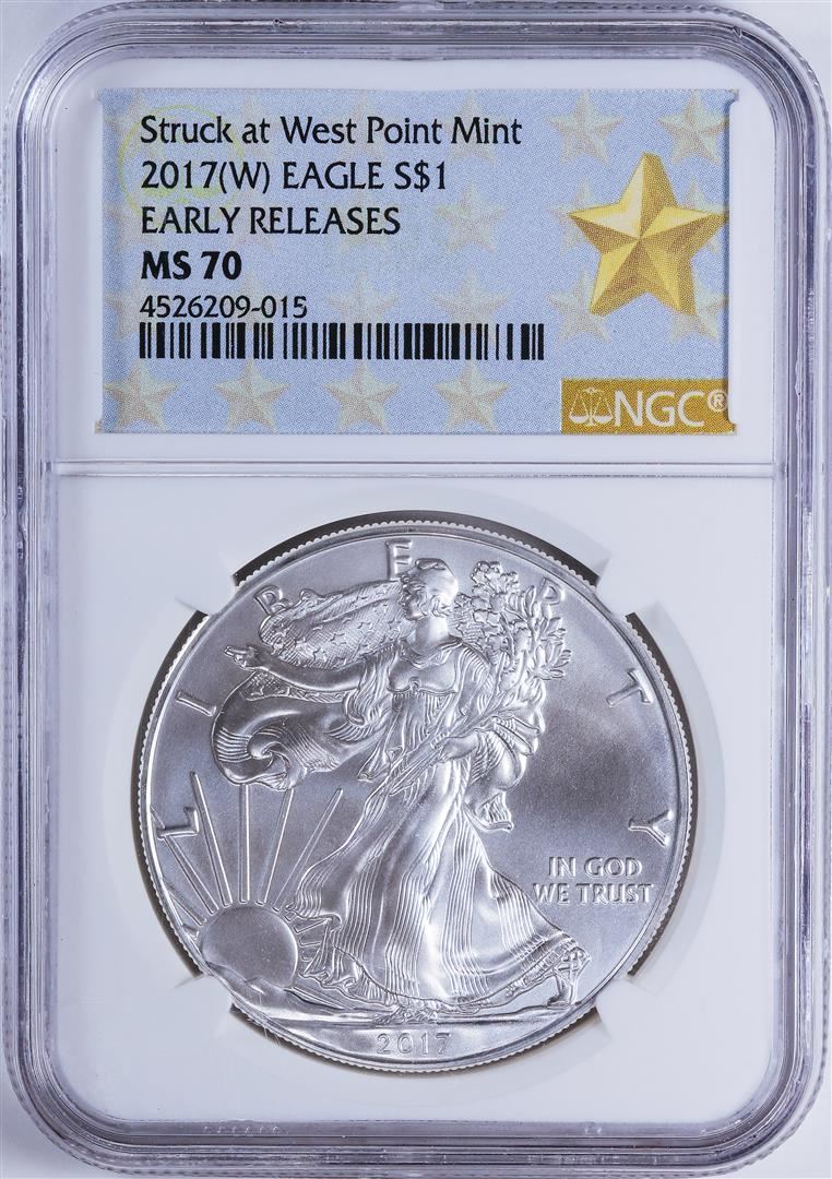 One 2017-W $1 American Silver Eagle NGC MS70 Early Releases.