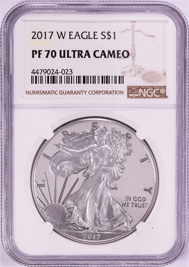One 2017-W $1 Proof American Silver Eagle Coin NGC PF70 Ultra Cameo. NGC Certified.