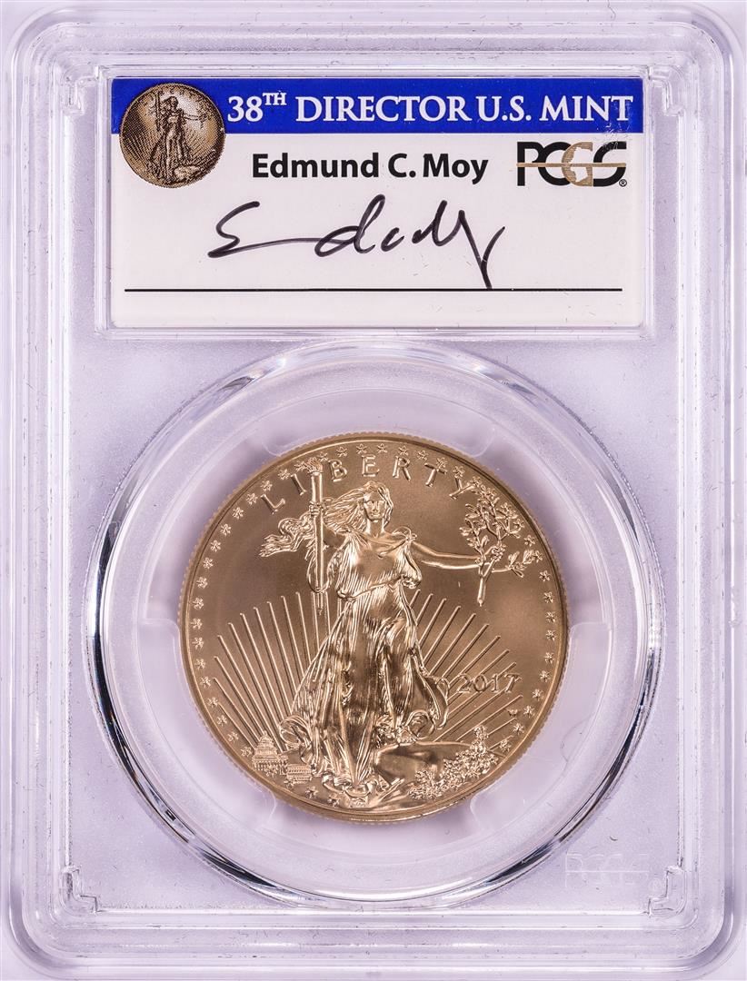 One 2017-W $50 Burnished American Gold Eagle Coin PCGS SP70 FDOI Philadelphia Moy Signature. PCGS Graded.