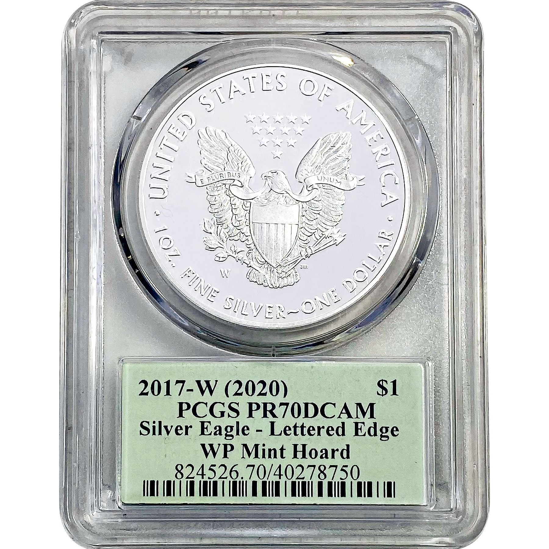 2017-W Lettered Edge Silver Eagle PCGS PR70 WP Min