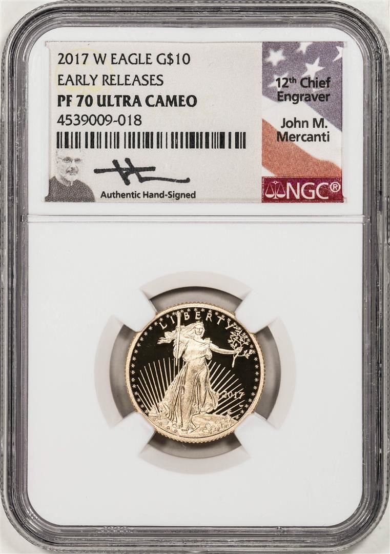One 2017-W Proof $10 American Gold Eagle Coin NGC PF70 Ultra Cameo ER Mercanti Signed. NGC Certified.