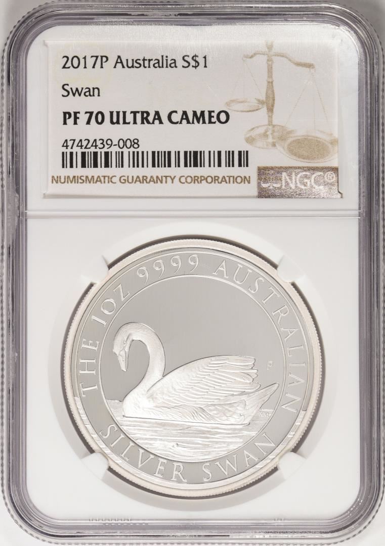 One 2017P $1 Australia Swan Proof Silver Coin NGC PF70 Ultra Cameo. NGC Certified.