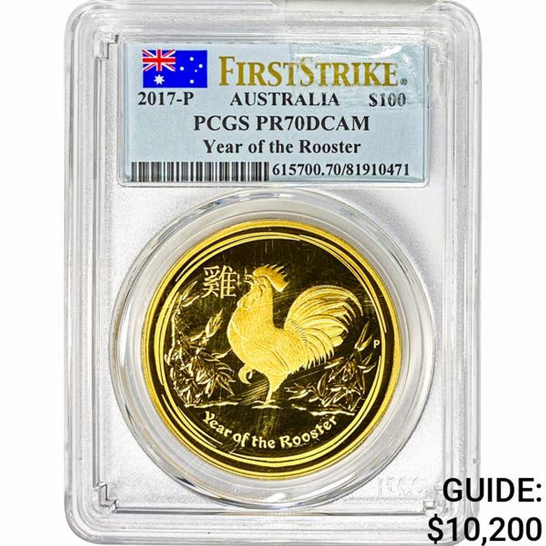 2017P Australia 1oz Gold $100 Rooster PCGS PR70