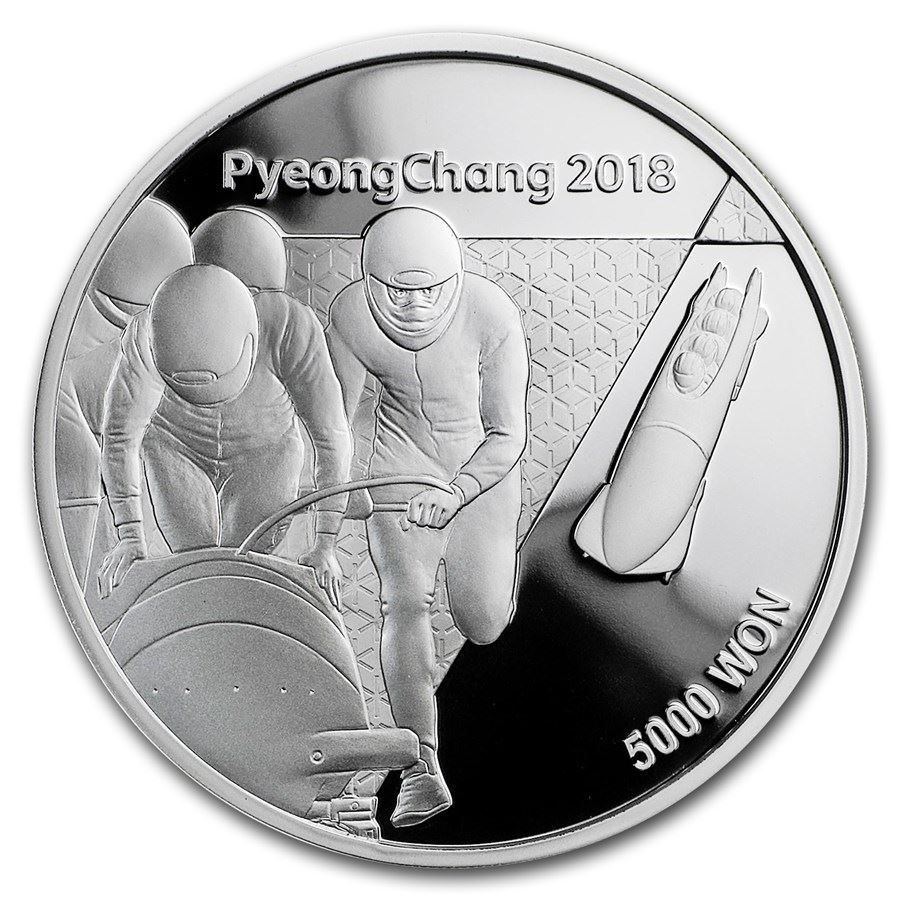 2018 1/2 oz Silver PyeongChang Winter Olympic Bobsled Proof