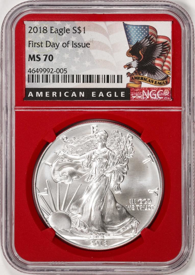 2018 $1 American Silver Eagle Coin NGC MS70 First Day of Issue Red Core