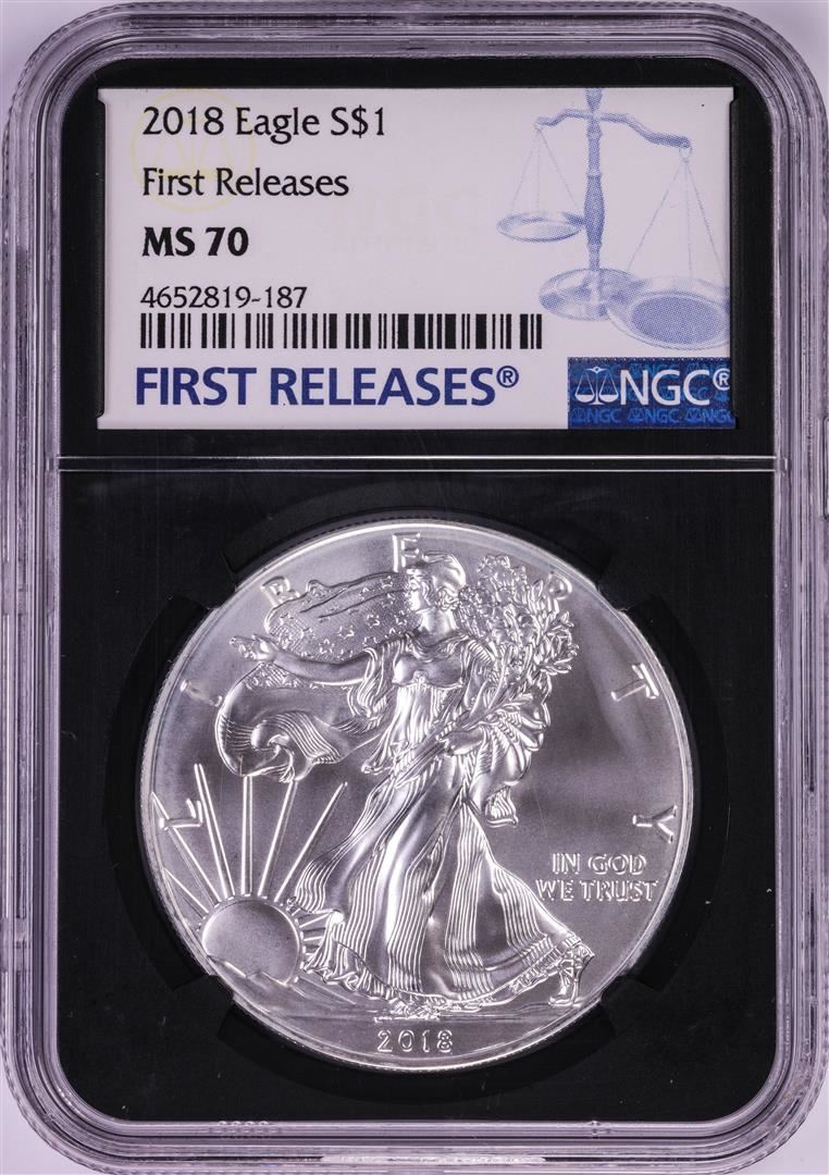 One 2018 $1 American Silver Eagle Coin NGC MS70 First Releases. NGC Certified.