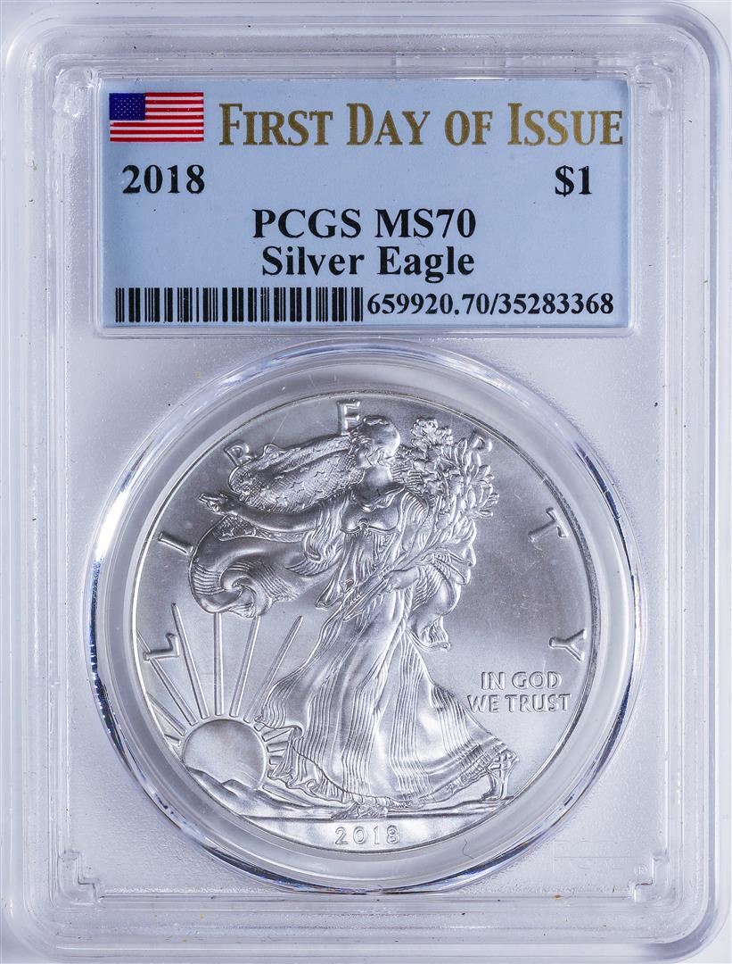 One 2018 $1 American Silver Eagle PCGS MS70 1st Day of Issue.