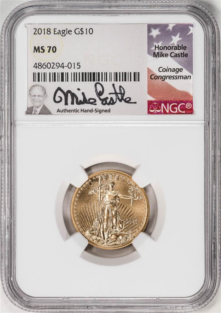 2018 $10 American Gold Eagle Coin NGC MS70 Mike Castle Signature