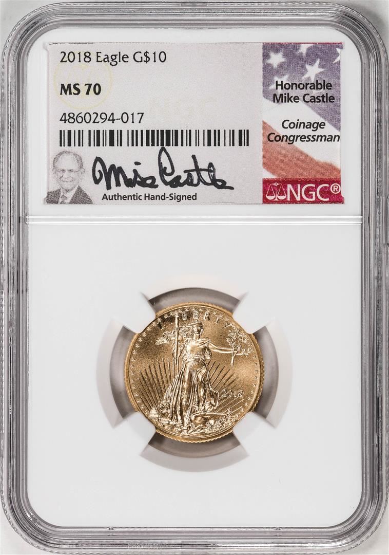2018 $10 American Gold Eagle Coin NGC MS70 Mike Castle Signature