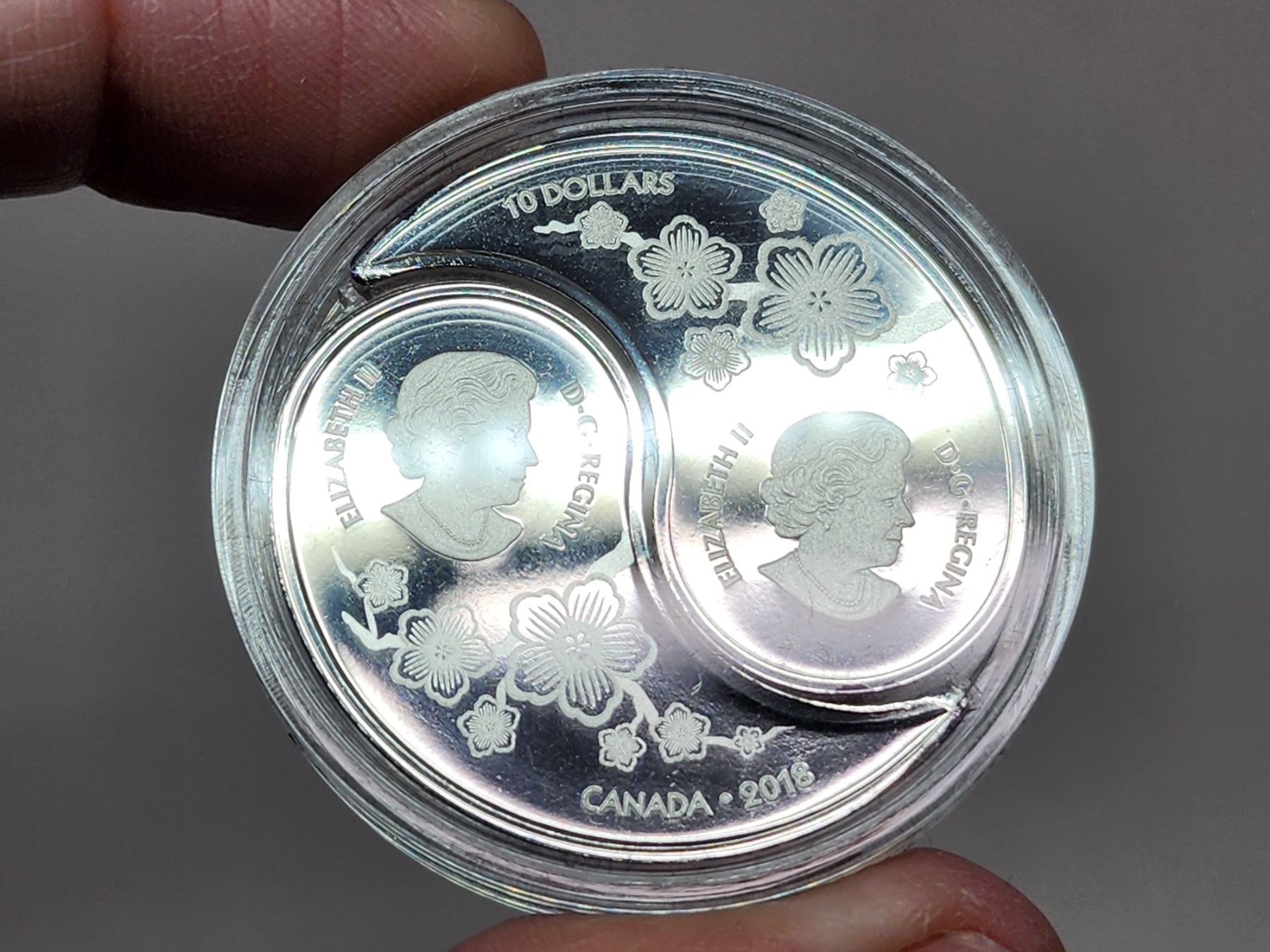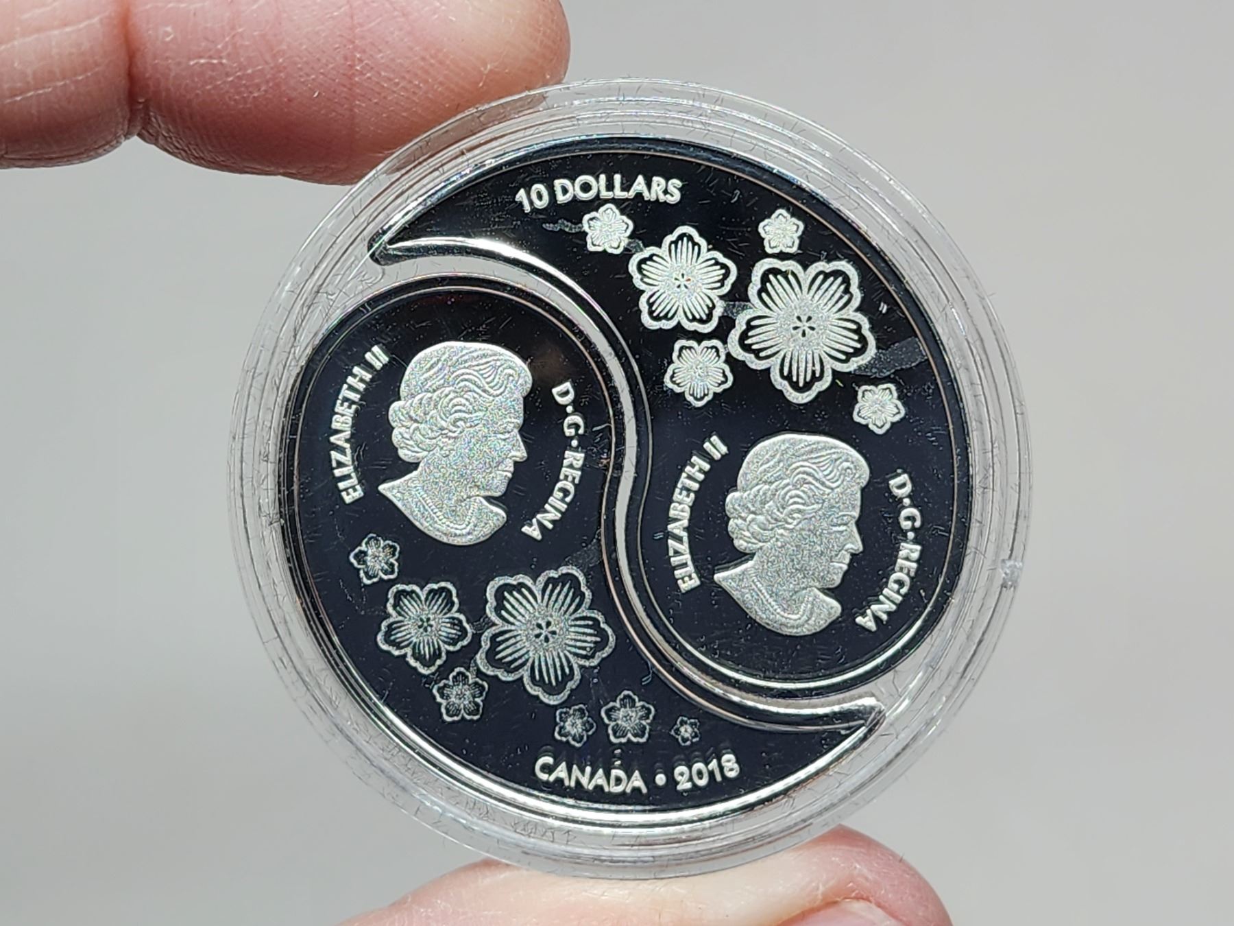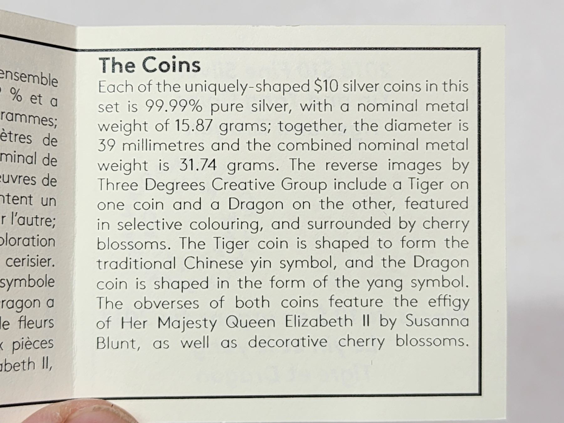 2018 $10 Yin & Yang: Tiger & Dragon. Colourized. 99.99% pure Silver. Proof. Housed in its original RCM case & box of issue.