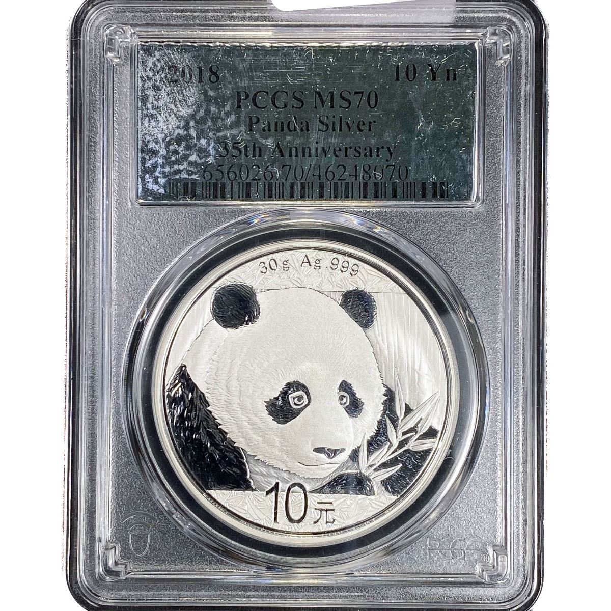 2018 10 Yn China Panda Silver PCGS MS70 35th Ann