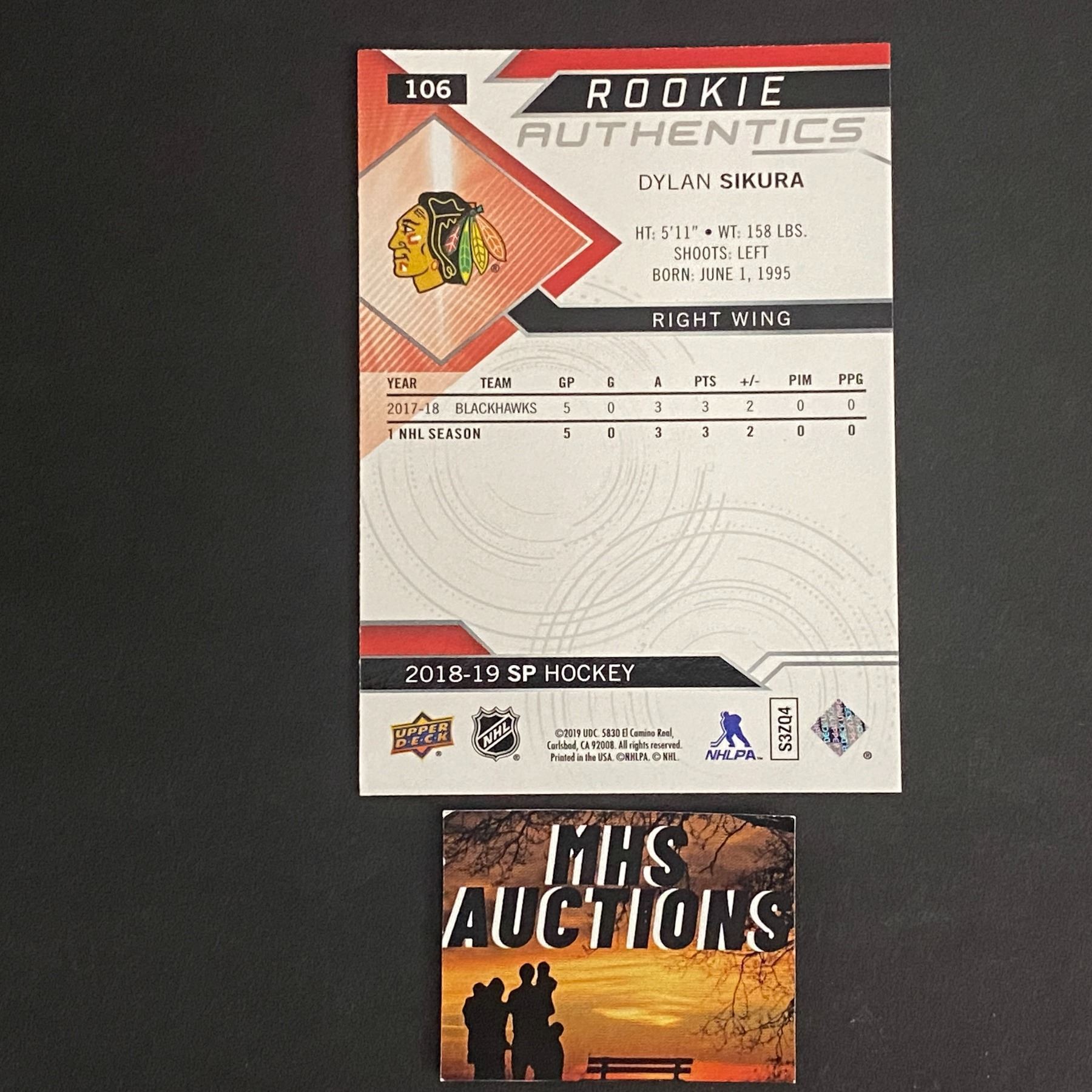 2018-19 SP HOCKEY ROOKIE CARD DYLAN SIKURA