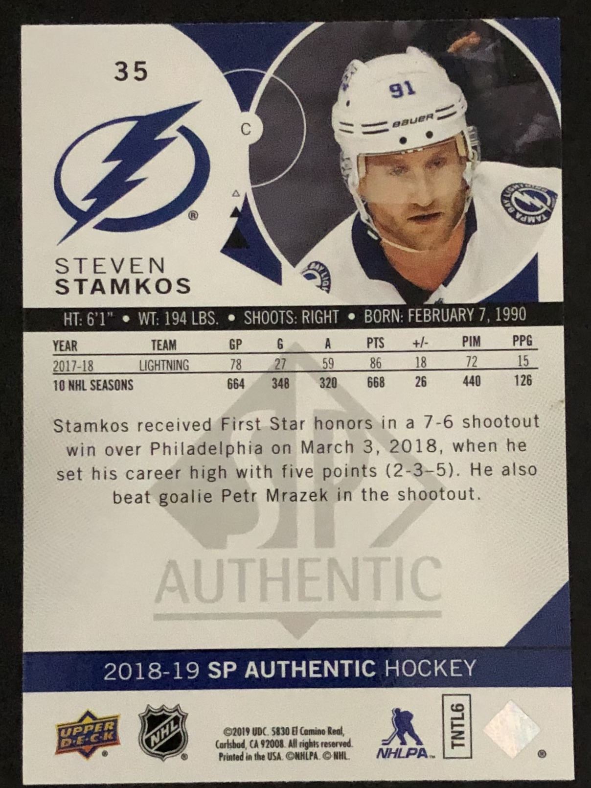 Card #35 UD SP Authentic NHL hockey