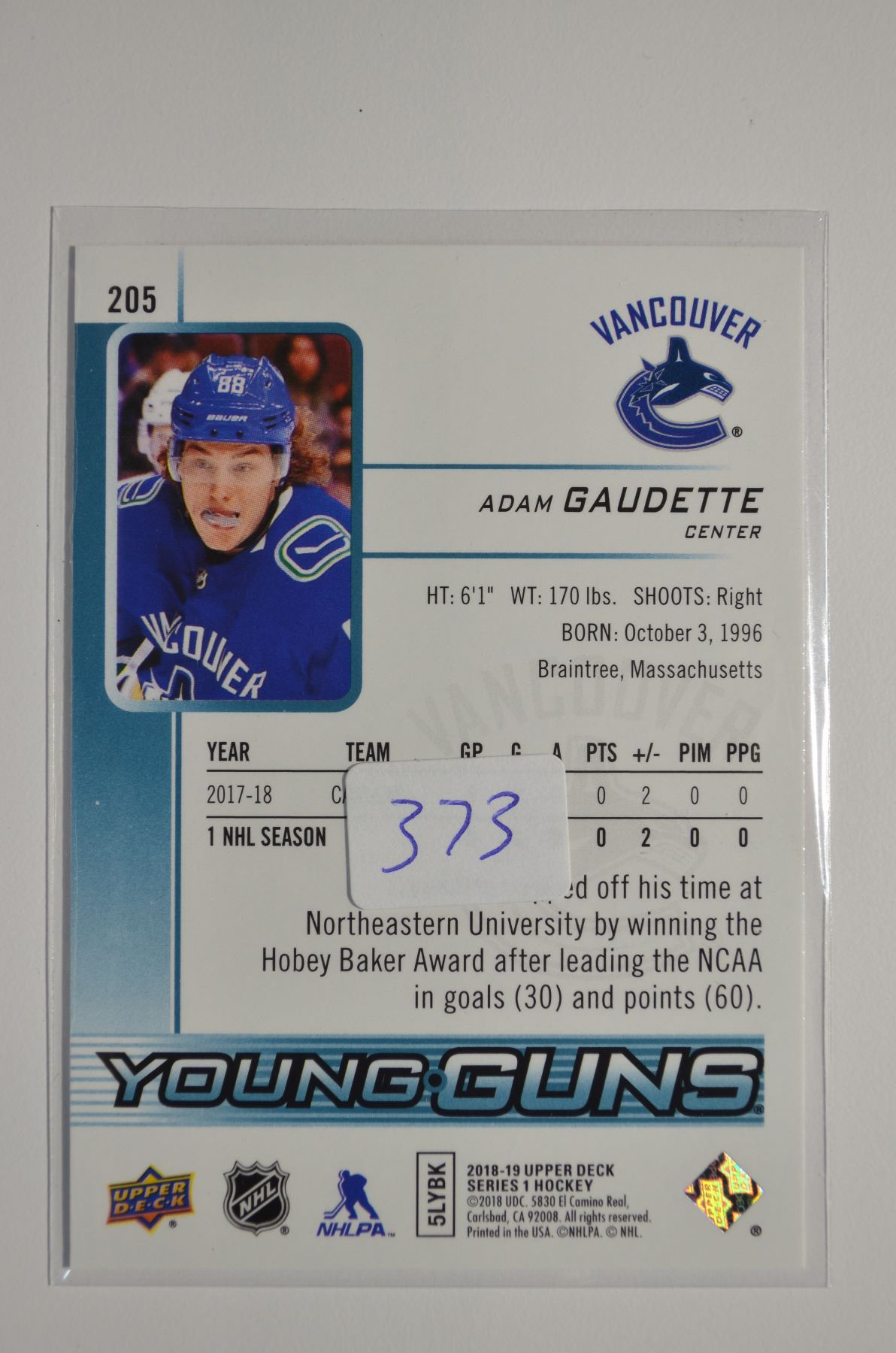 2018-19 Upper Deck #205 Adam Gaudette YG RC