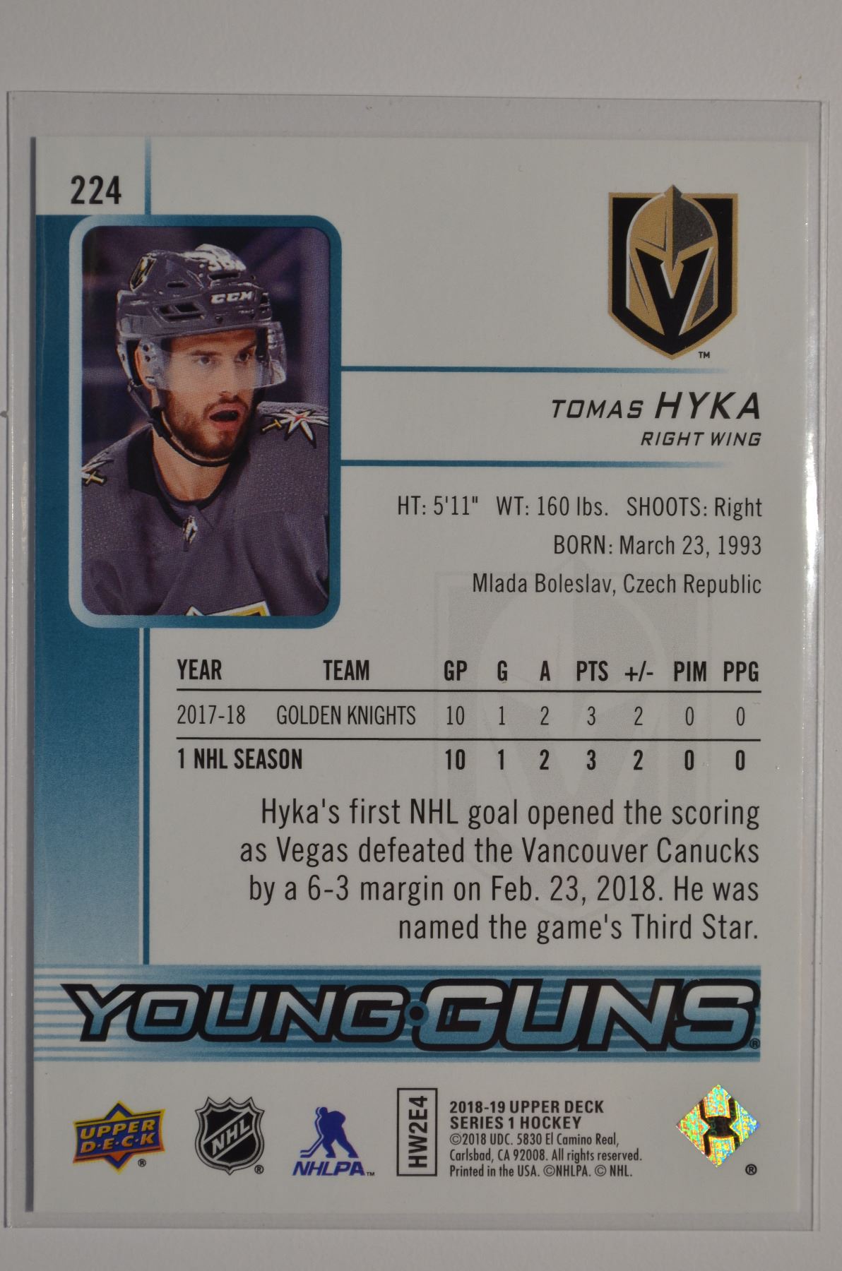 2018-19 Upper Deck #224 Tomas Hyka YG RC