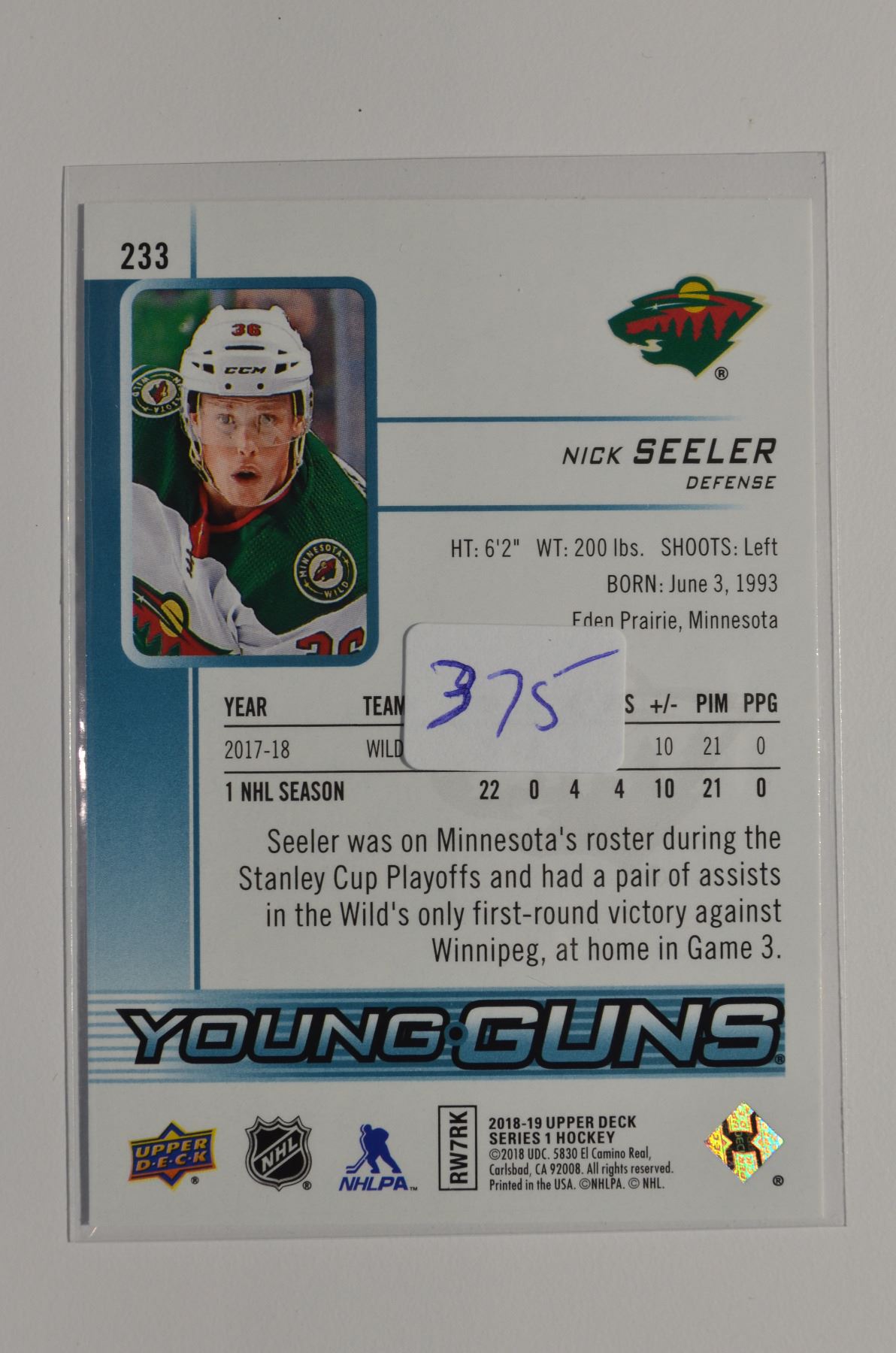 2018-19 Upper Deck #233 Nick Seeler YG RC