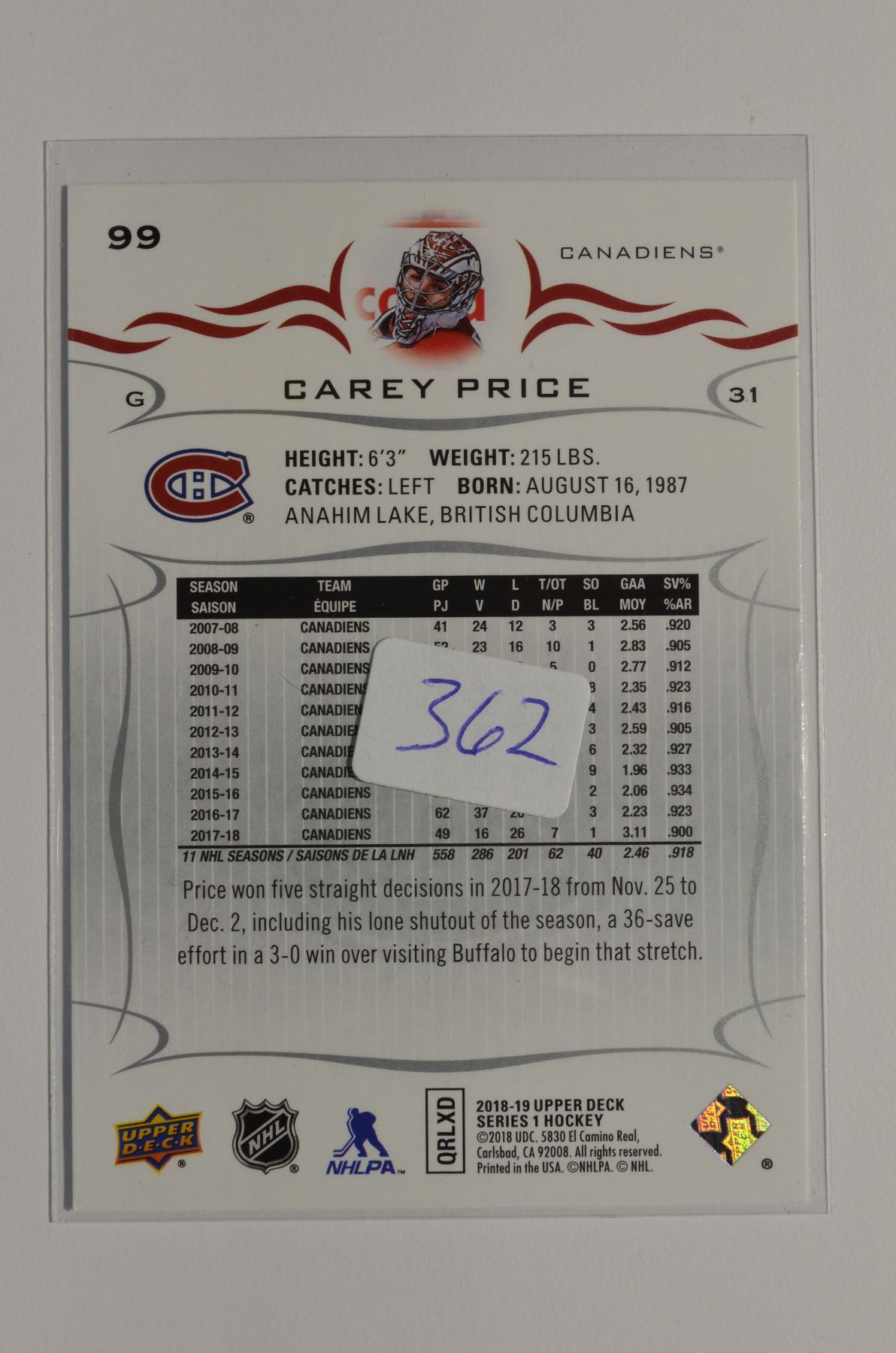2018-19 Upper Deck #99 Carey Price
