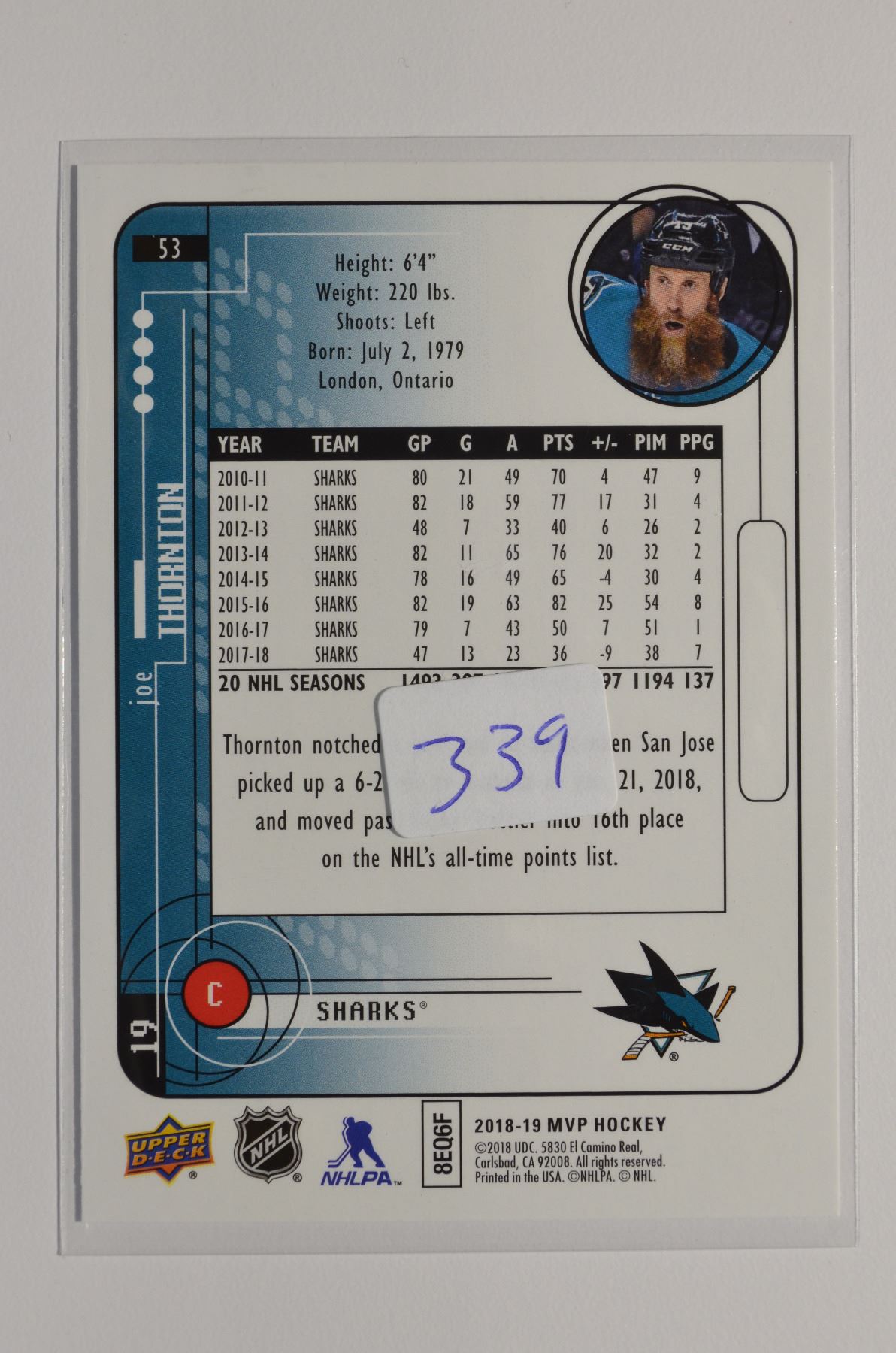 2018-19 Upper Deck MVP 20th Anniversary Tribute Silver Script #53 Joe Thornton