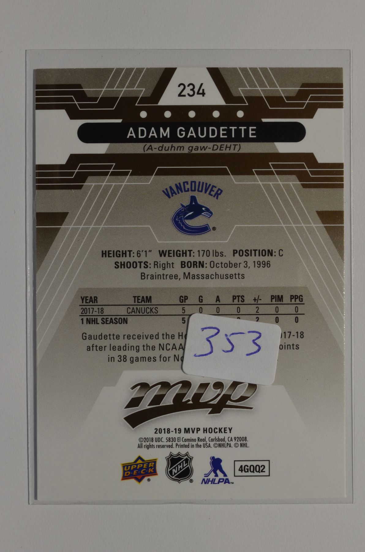 2018-19 Upper Deck MVP #234 Adam Gaudette RC