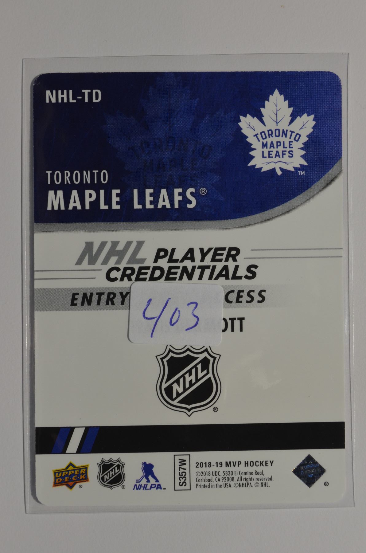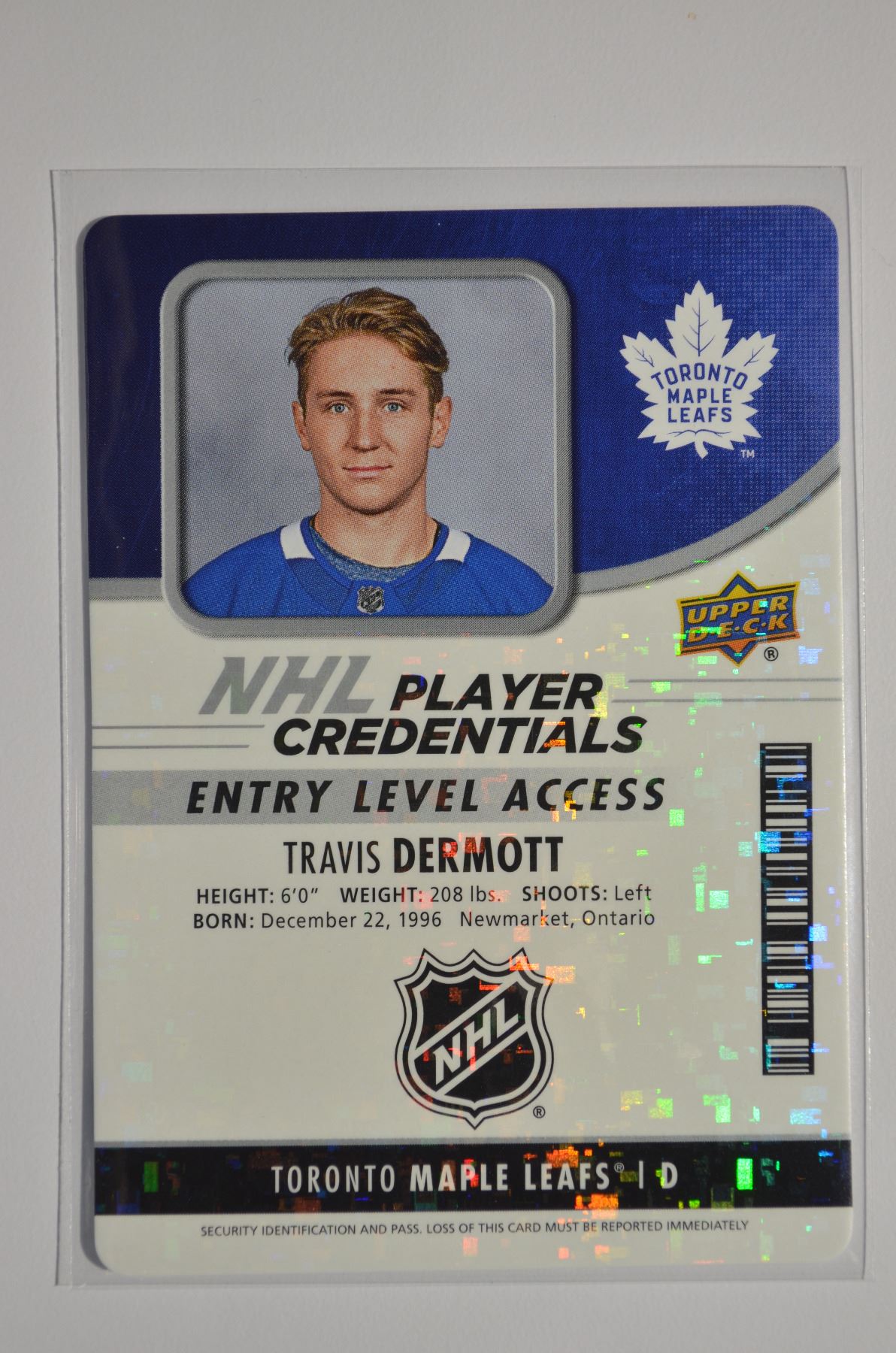 2018-19 Upper Deck MVP NHL Player Credentials Entry Level Access #NHLTD Travis Dermott