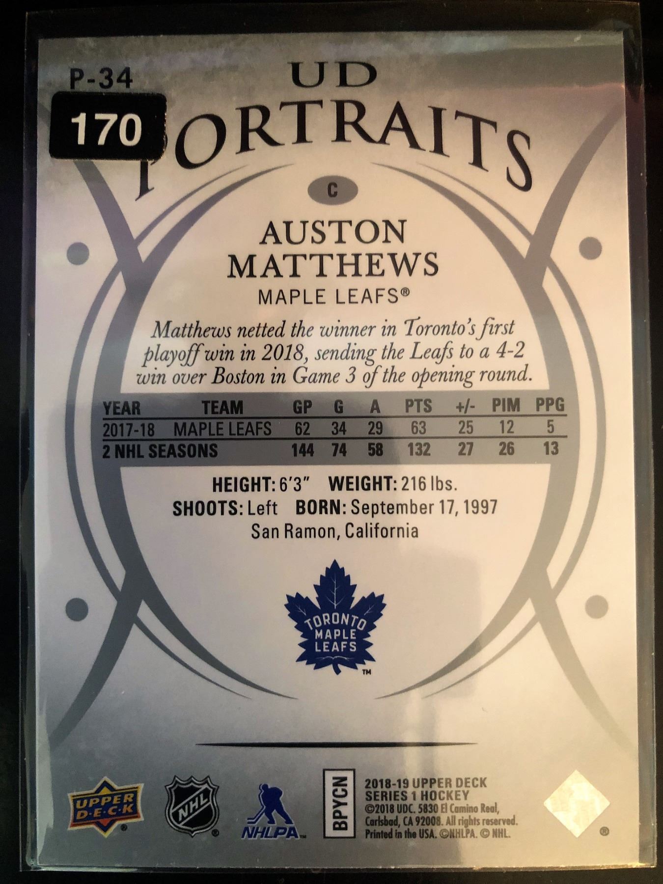 2018-19 Upper Deck Portraits Auston Matthews Card #P-34 Series #1