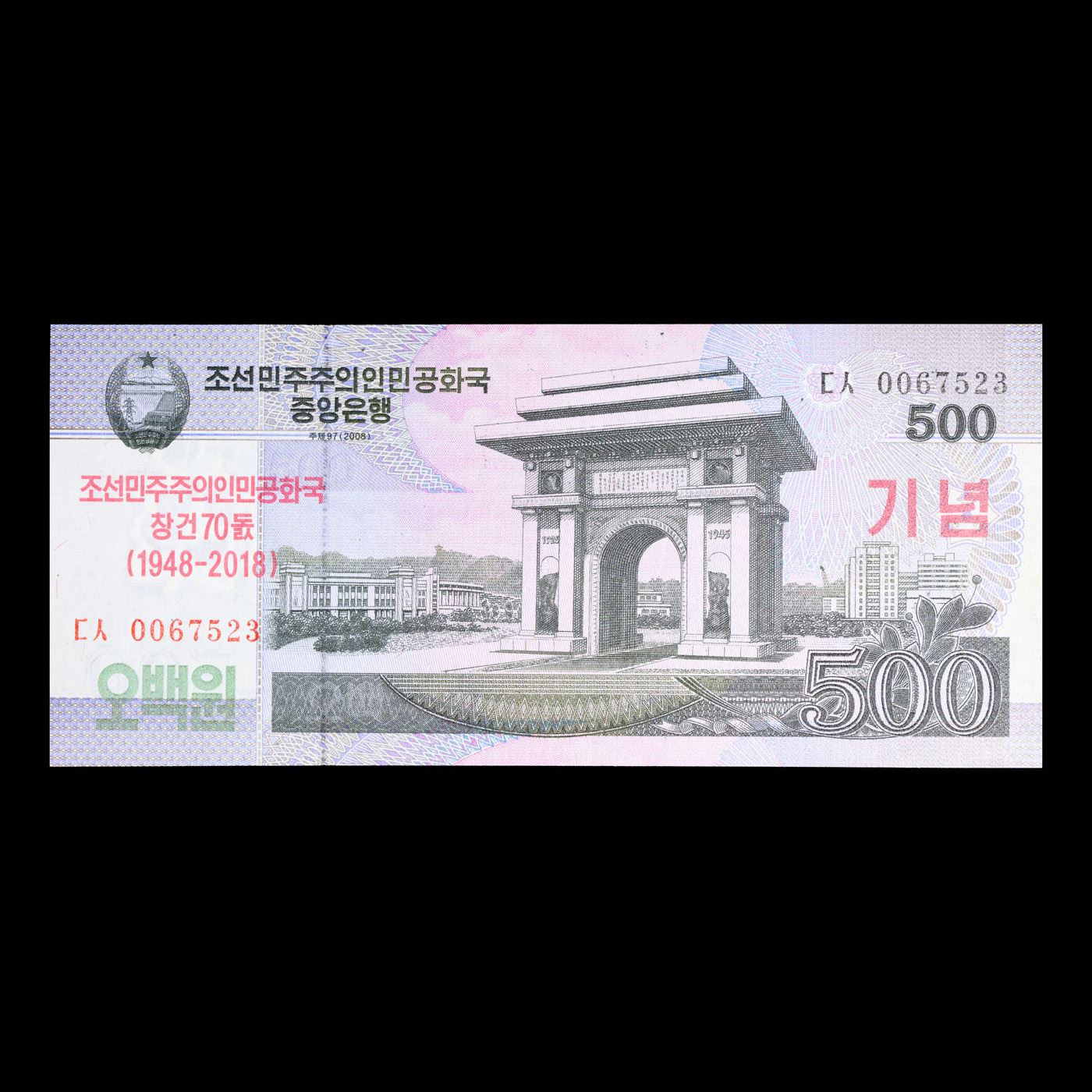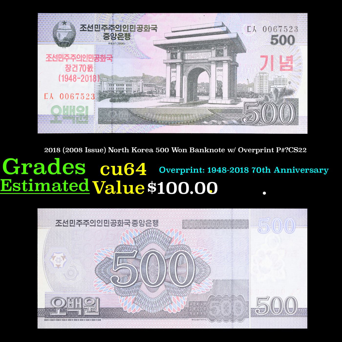 2018 (2008 Issue) North Korea 500 Won Banknote w/ Overprint P#?CS22 Grades Choice CU.