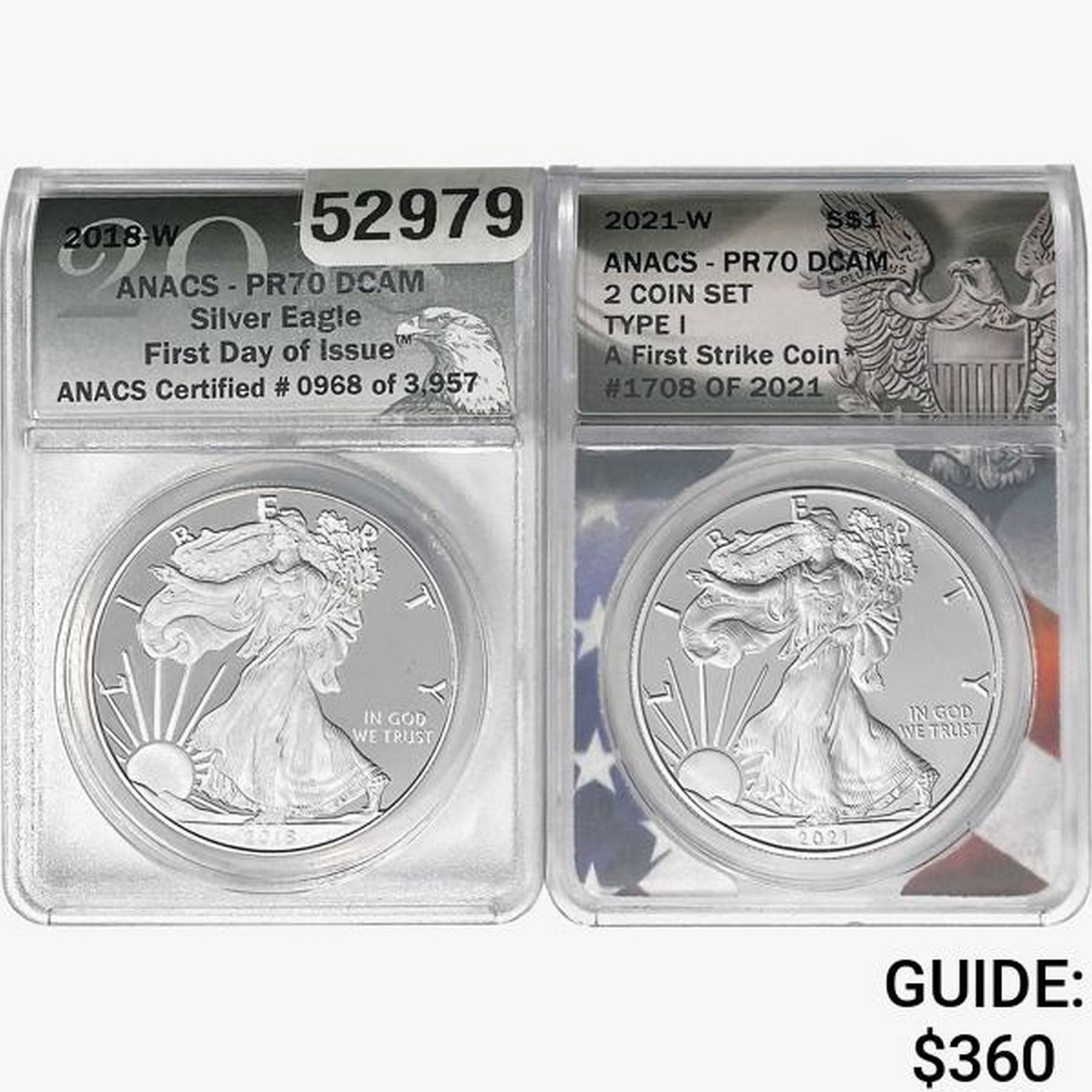 2018-2021 [2] Silver Eagle ANACS PR70 DCAM