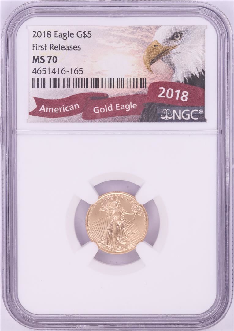 One 2018 $5 American Gold Eagle Coin NGC MS70 First Releases. NGC Certified.