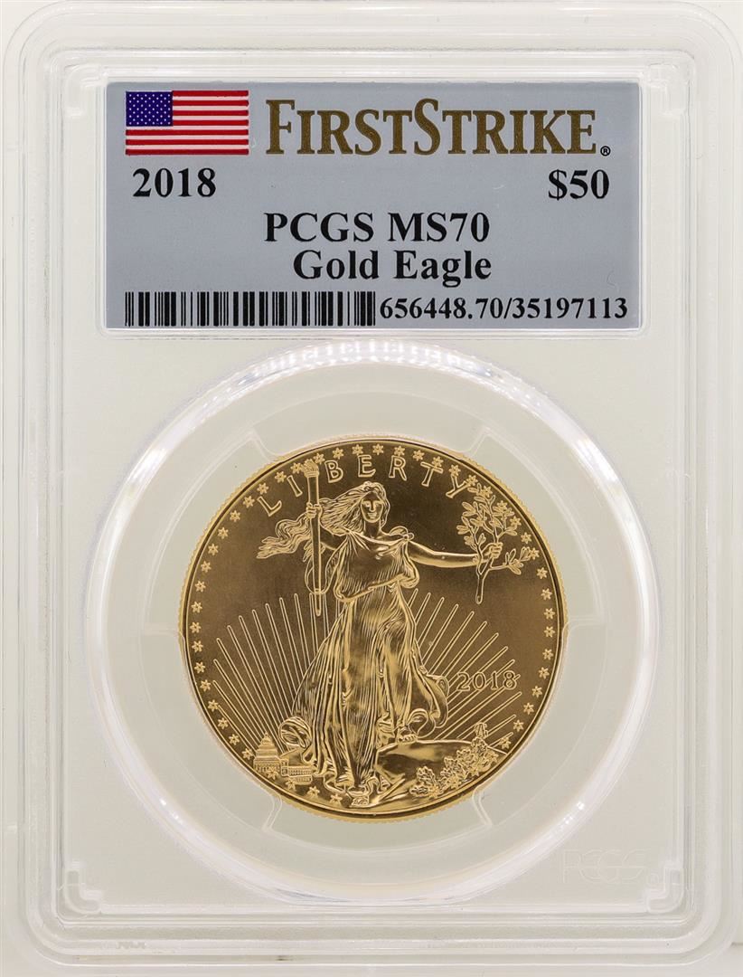 One 2018 $50 American Gold Eagle Coin PCGS MS70 First Strike. PCGS Graded.