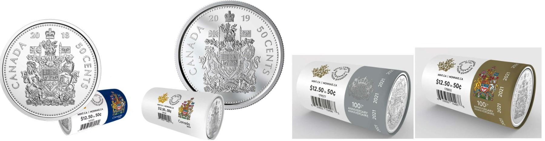 2018 50¢ Roll, 2019, 2021 Reg, 2021 Special, lot of 4 Roll Special Wrapping.