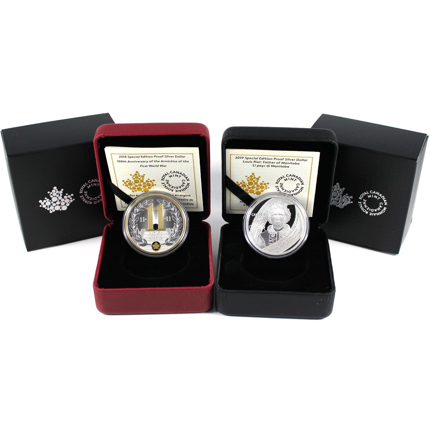 2018 Armistice & 2019 Louis Riel Special edition proof silver dollar ( Tax Exempt) 2pcs