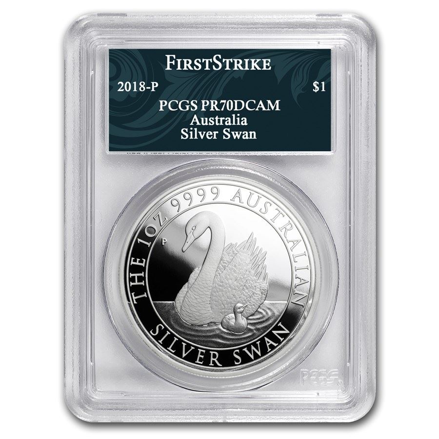 2018 Australia 1 oz Silver Swan PR-70 PCGS (FS, Swan Label)