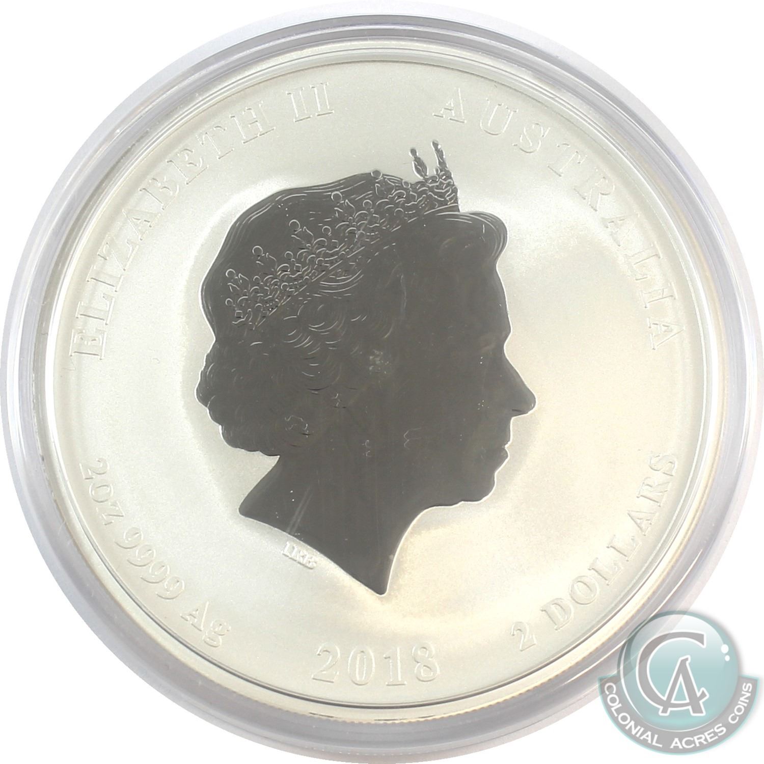 2018 Australia $2 Year of the Dog 2oz Fine Silver Coin (Tax Exempt) Capule containts scratches.