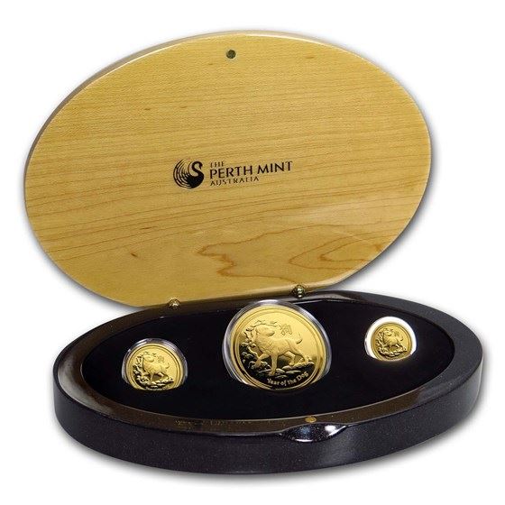 One piece 2018 Australia 3-Coin Gold Lunar Dog Proof Set (1.35 oz)