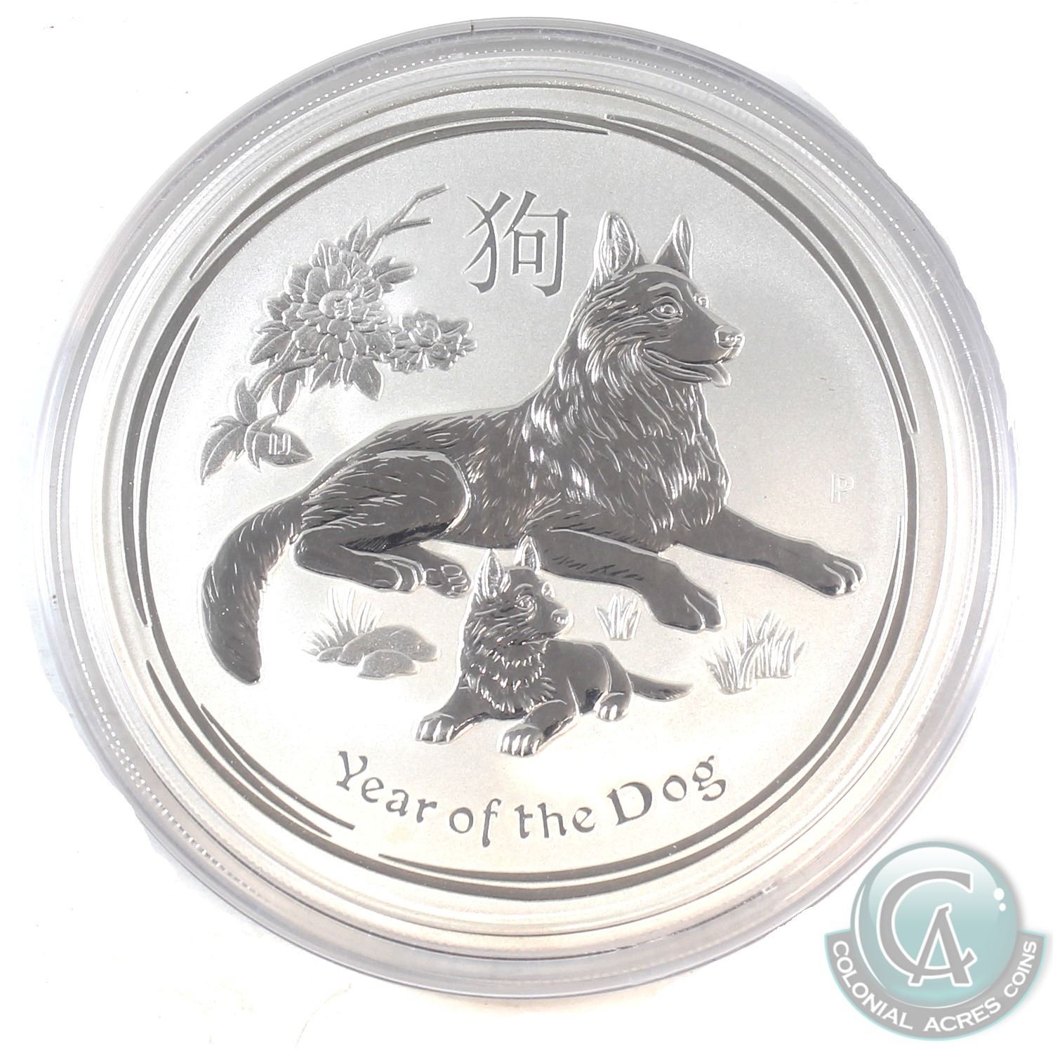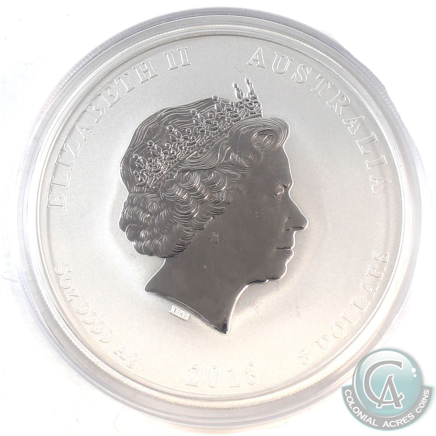 2018 Australia $8 Year of the Dog 5oz .999 Fine Silver Coin in Capsule (Scratches on capsule). (TAX Exempt)
