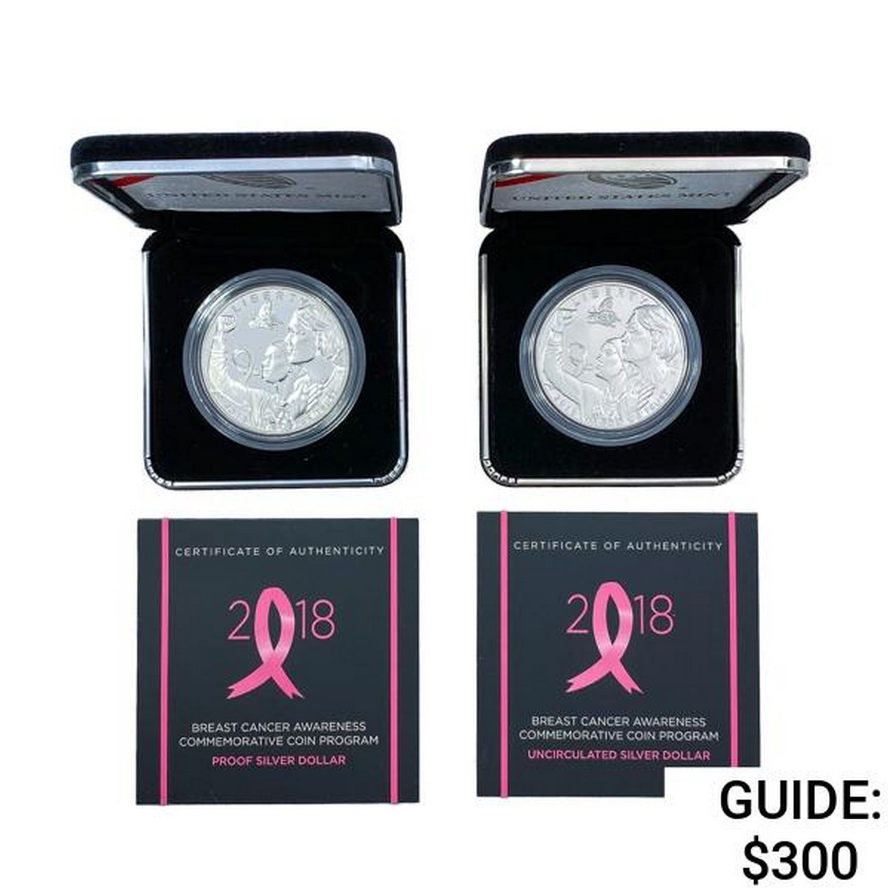 2018 Breast Cancer Comm. Silver Dollars [2 Coins]
