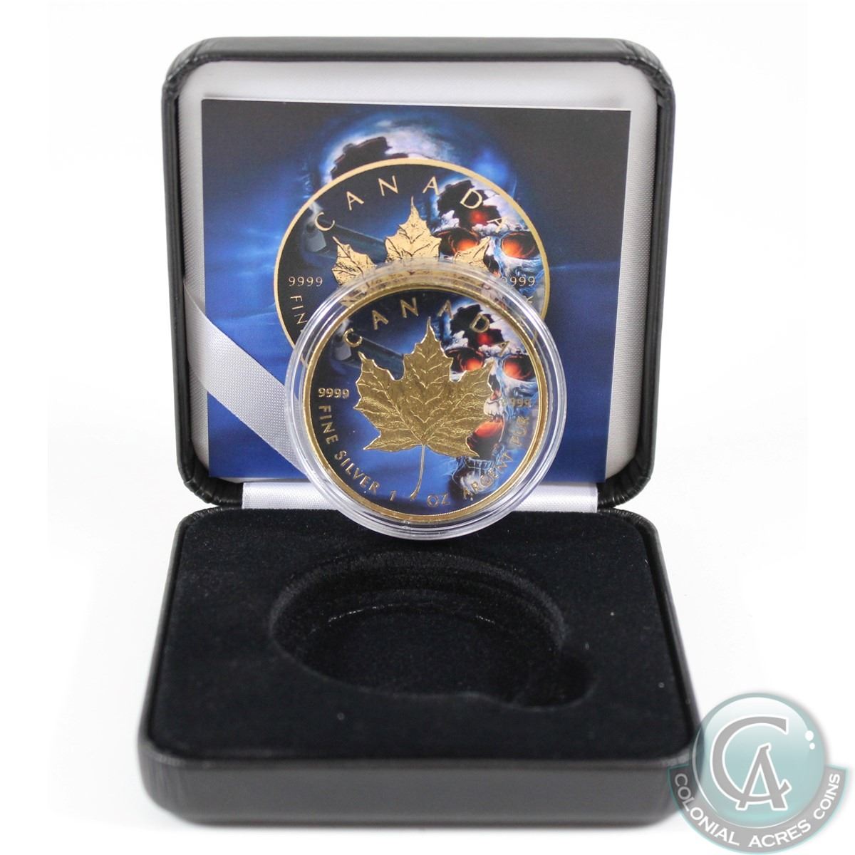 2018 Burning Skull Colourized & 24K Gold Plated $5 Silver Maple Leaf with Display box (Tax Exempt)
