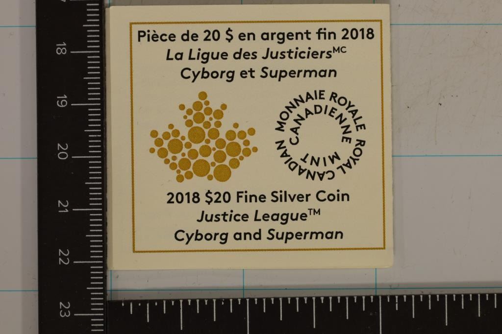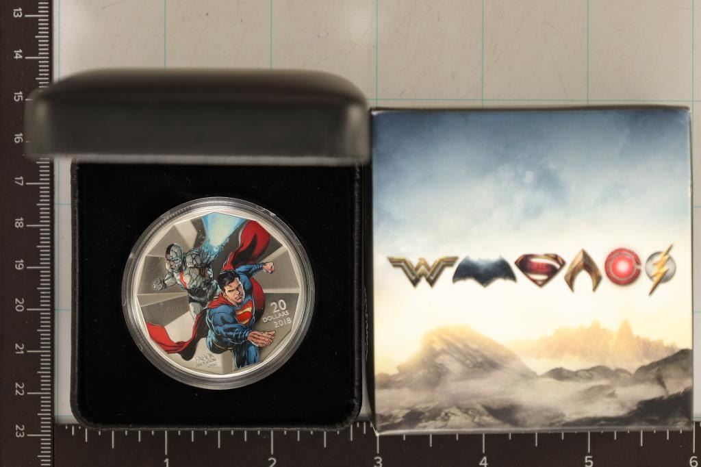 COLORIZED FEATURING "CYBORG AND SUPERMAN", IN ACTION POSE WITH GLOW IN THE DARK EFFECT, BRILLIANT UNC, ORIGINAL ROYAL CANADIAN MINT PACKAGING AND WITH CERTIFICATE