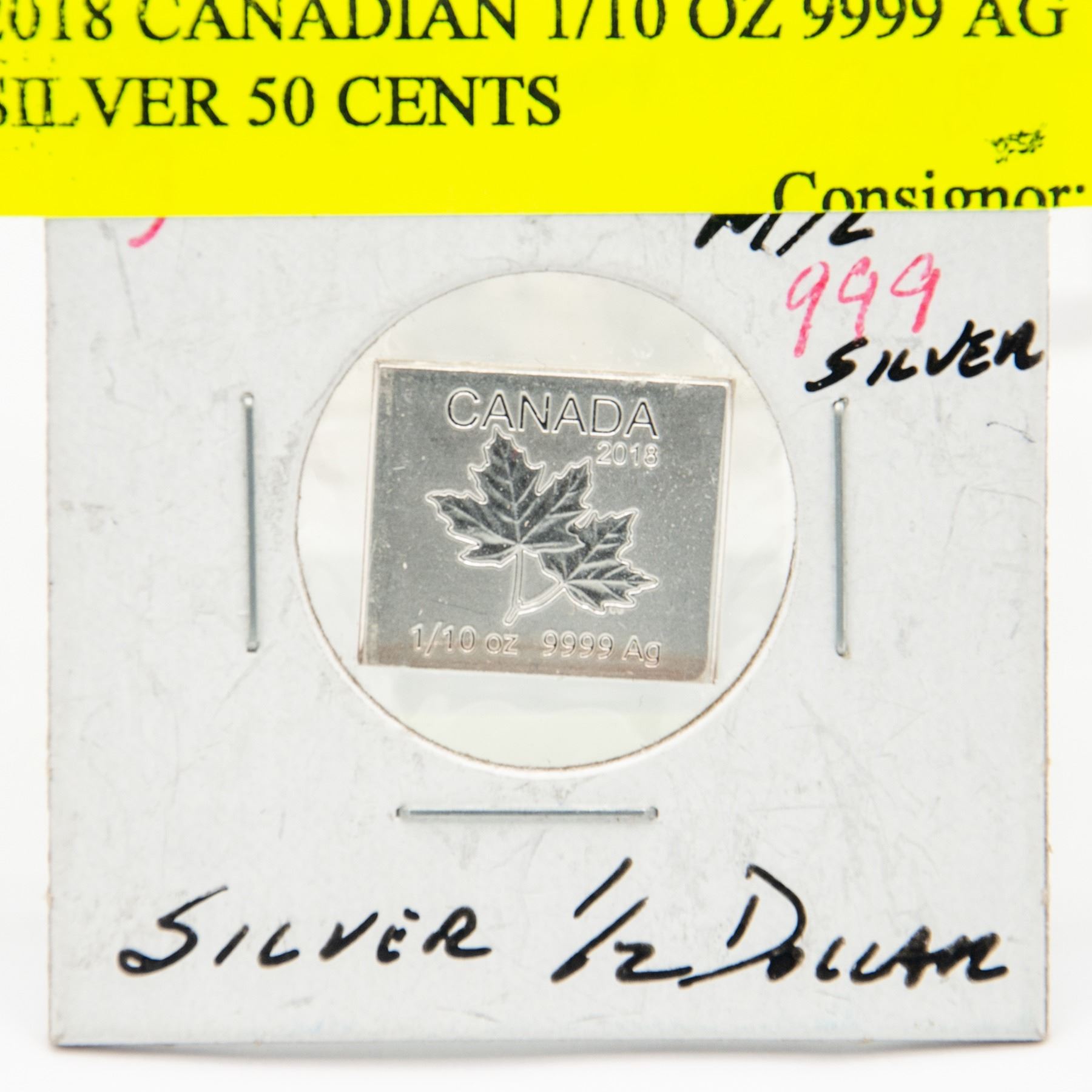 2018 CANADIAN 1/10 OZ 9999 AG SILVER 50 CENT PIECE
