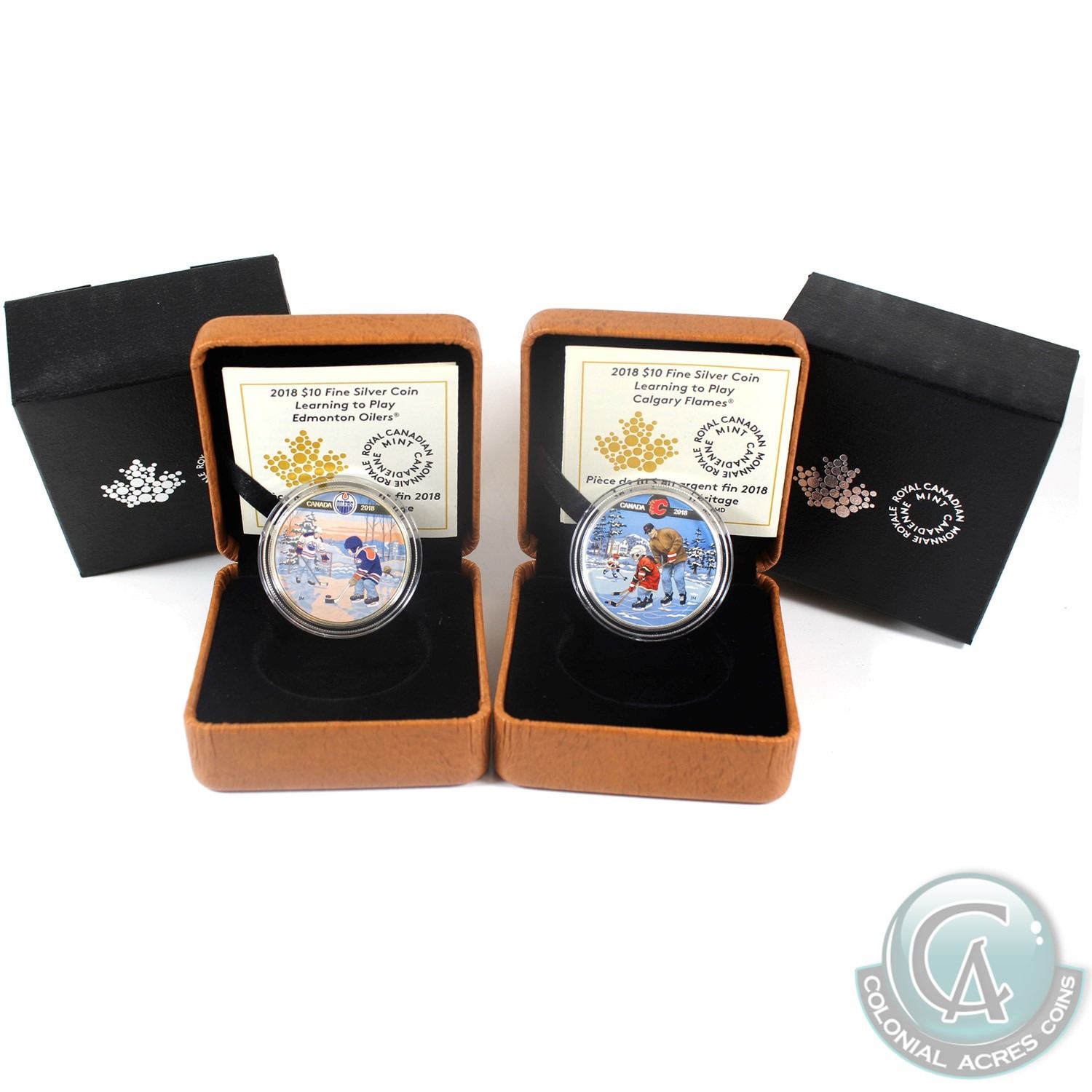2018 Canada $10 Learning to Play - Edmonton Oilers & Calgary Flames Fine Silver Coins (Edmonton Oilers coin is lightly toned). 2pcs (TAX Exempt)