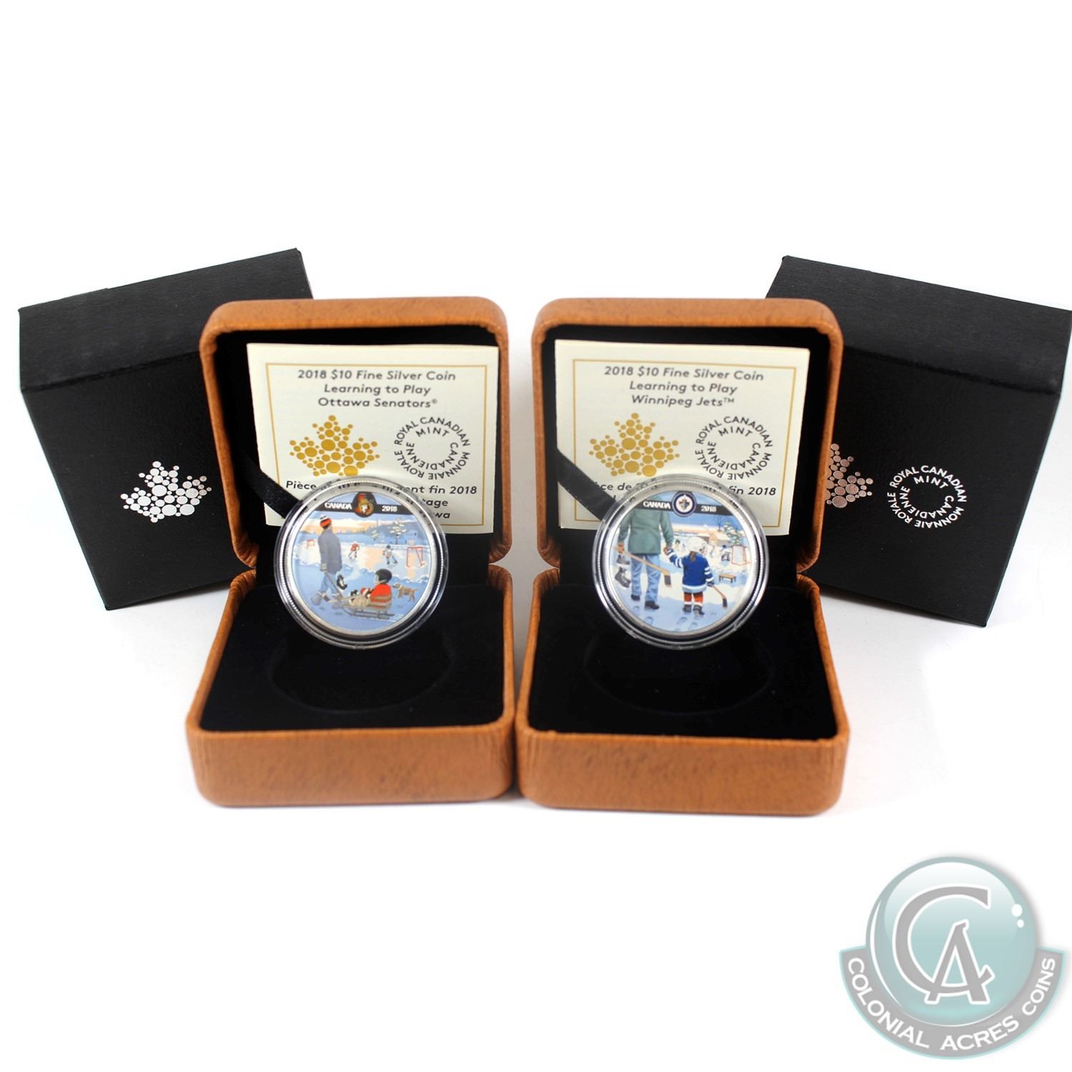 2018 Canada $10 Learning to Play - Ottawa Senators & Winnipeg Jets Fine Silver Coins. 2pcs (TAX Exempt)
