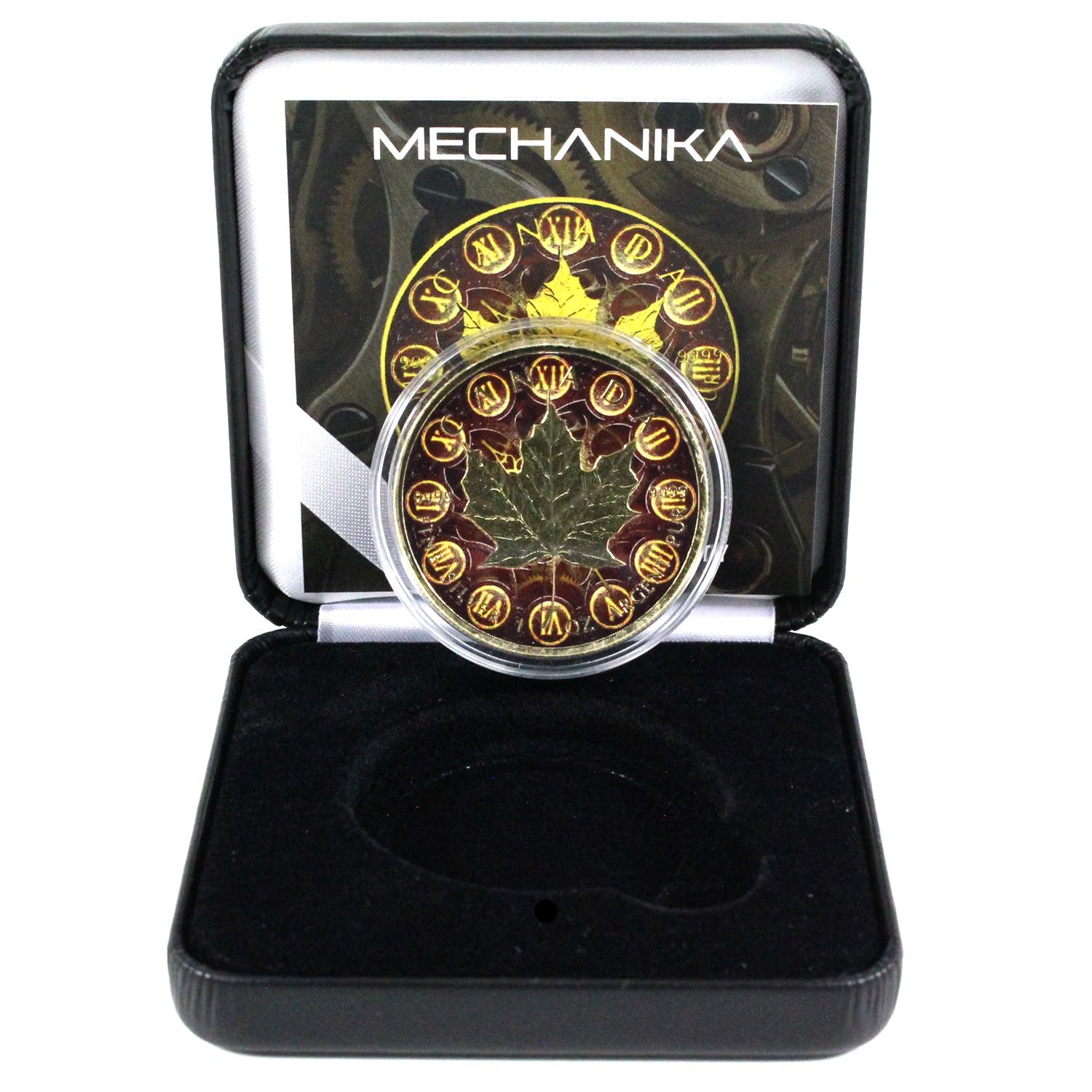 2018 Canada 1oz Mechanika Coloured & Gilded .9999 Fine Silver Maple Leaf in Smitty's Treasures Black Display Box with COA. (TAX Exempt)