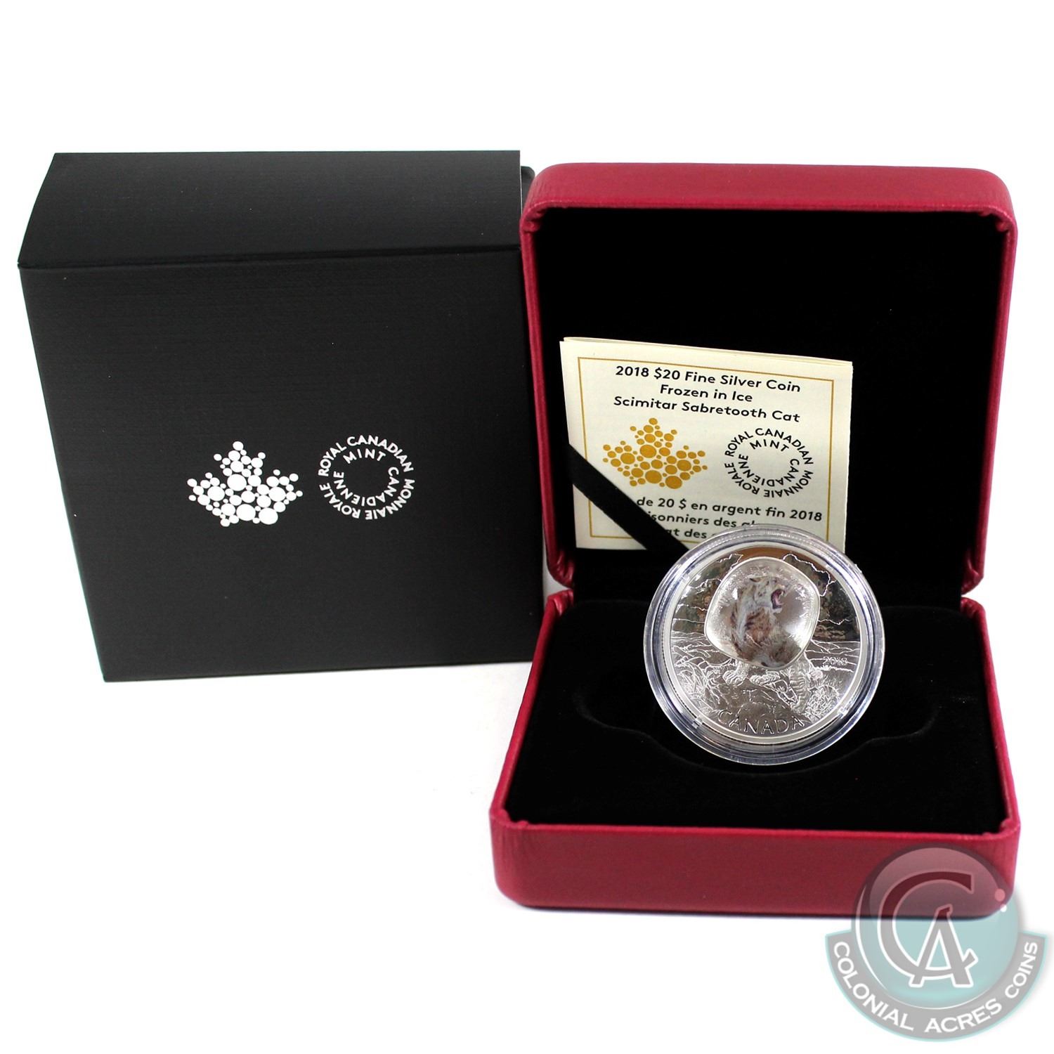 2018 Canada $20 Frozen in Ice - Scimitar Sabretooth Cat Fine Silver Coin (Tax Exempt).