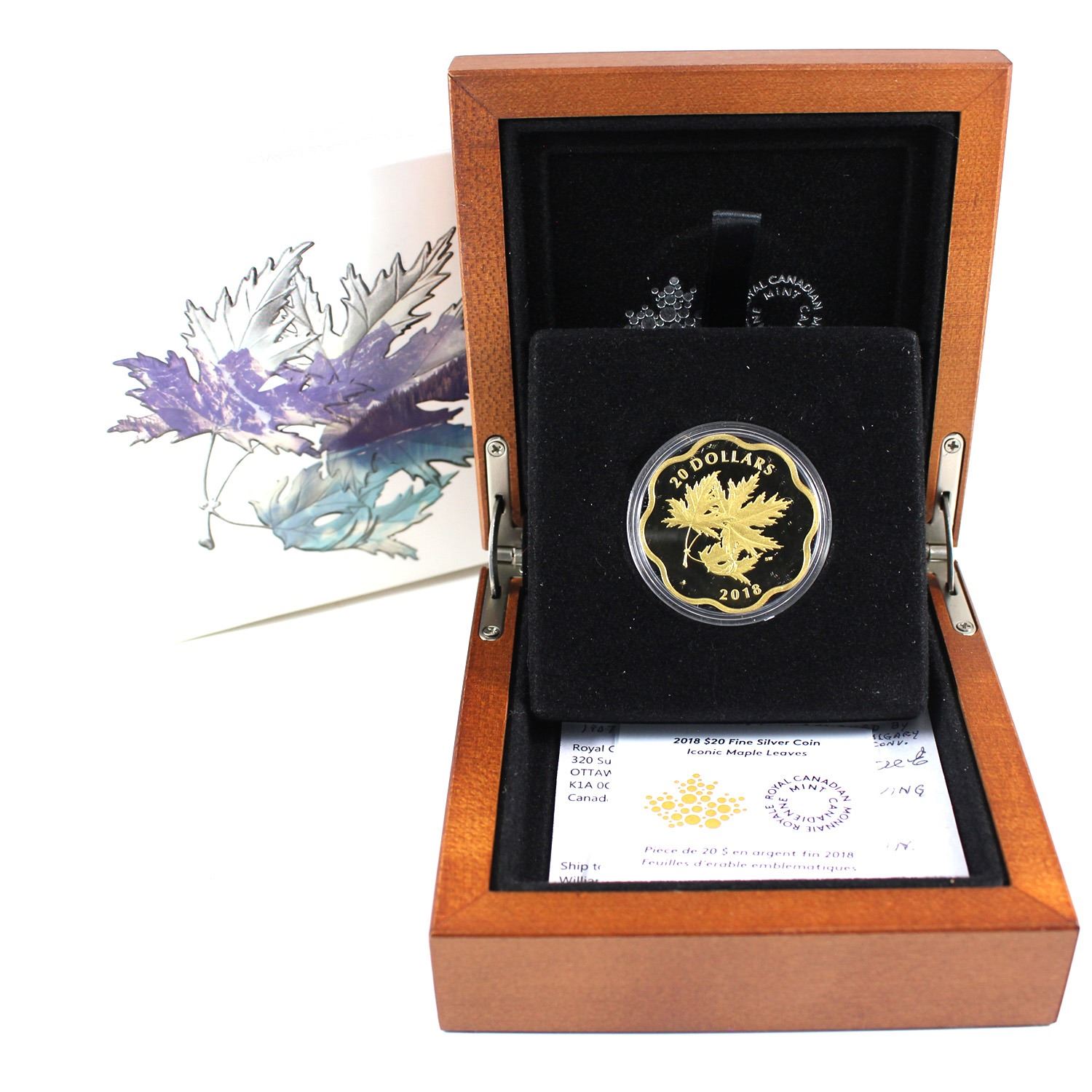 2018 Canada $20 Iconic Maple Leaves Fine Silver (No Tax). Comes with all original packaging. Various imperfections.