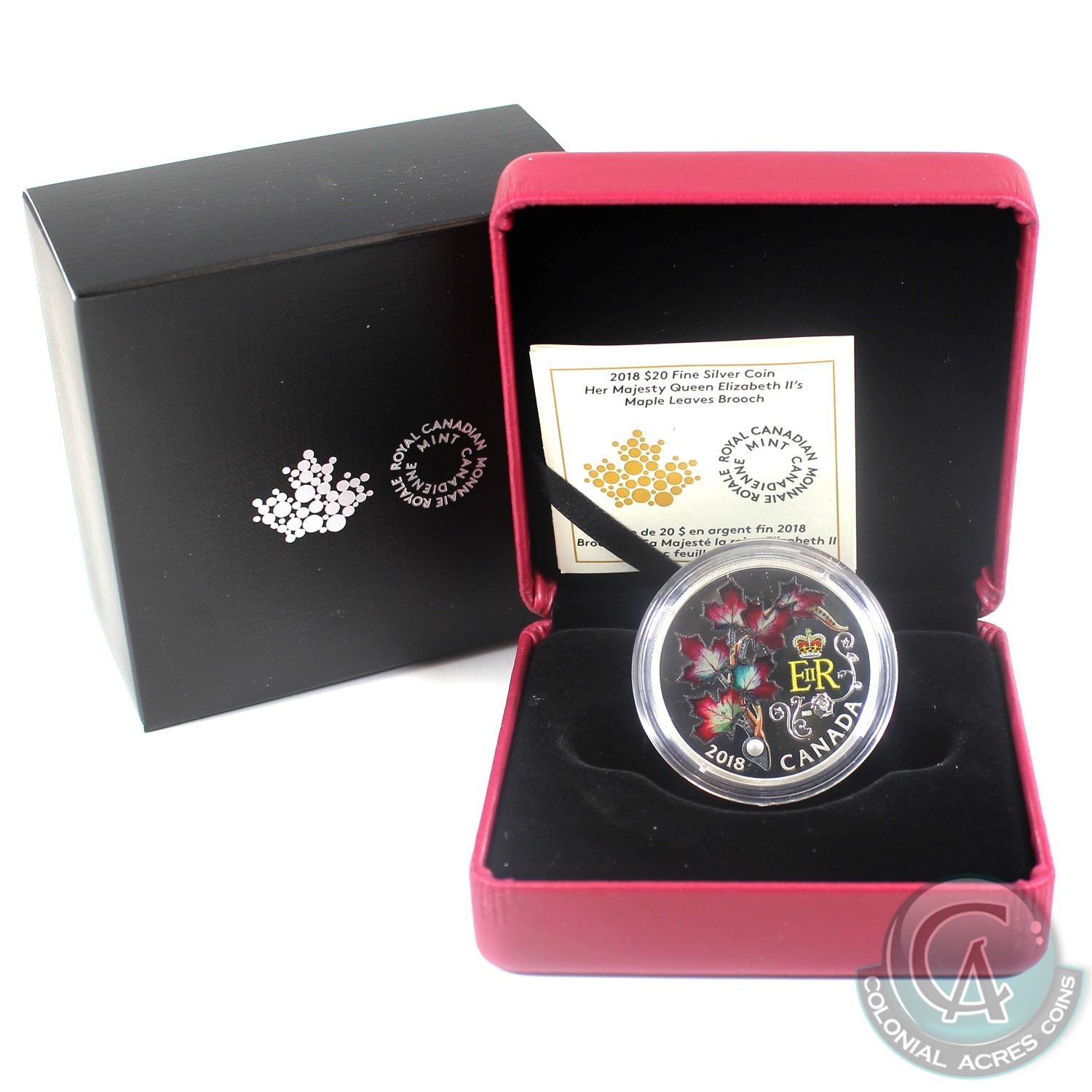 2018 Canada $20 Queen Elizabeth II's Maple Leaves Brooch Fine Silver Coin. (TAX Exempt)