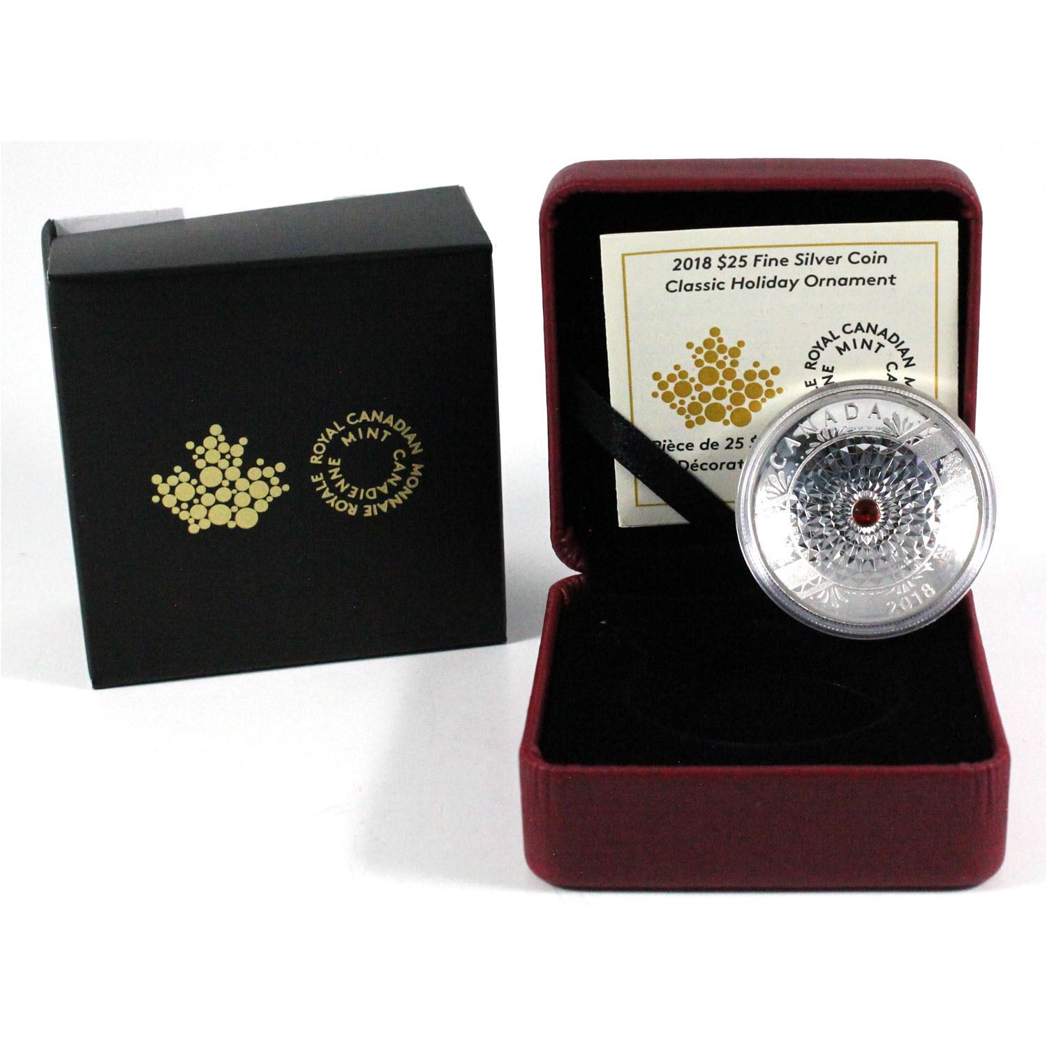 2018 Canada $25 Classic Holiday Ornament Fine Silver with Swarovski Crystal.